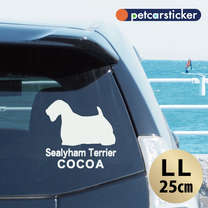 シーリハム・テリア シルエット型カーステッカーです。3M社製の耐久性に優れた屋外用シートを使用。オーダーメイドで名前を入れられます。カッティング 転写式 窓 車ステッカー