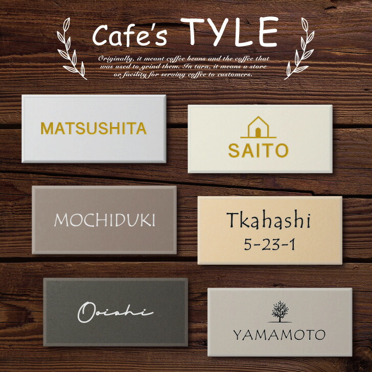 小さいサイズ で上品でふんわりとした優しい雰囲気を作ります。カフェっぽい色合いの磁器タイル を使用した 彫刻タイプ の表札です。 安心の 日本製 タイルを使用しています。ローマ字 漢字 ひらがな など おしゃれで 可愛い 書体をご用意。二世帯 ショップ こだわりの表札