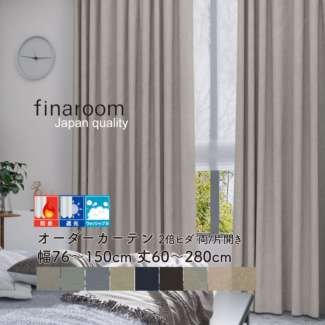 オーダーカーテン 防炎 遮光 ドレープ カーテン finaroom ジャパンクオリティ 上品 高級感 洗える 形態安定 タッセル付 2倍ヒダ【幅76〜150cm×丈60〜280cm】