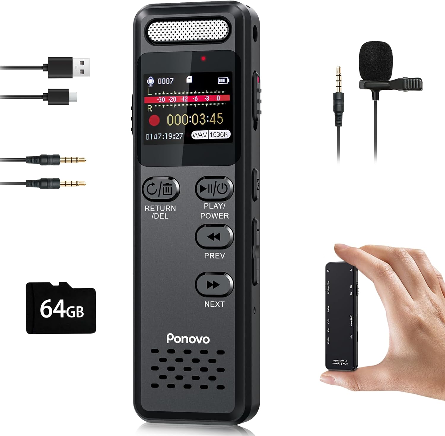 ボイスレコーダー 小型 96GB 100時間連続録音 ICレコーダー 長時間録音 1536kbps音質 コンパクト 録音機 ワンボタン録音 カラー画面 ロック機能 マイク付け SDカード対応 リピート機能付 VOR録音 スピーカー内蔵 タイマー録音 変速再生可【大容量&超長時間録音】内蔵32GB+付属64GB SDカードで合計96GB!付属の64GB SDカードで約900時間以上の録音が可能、合計96GBの大容量を実現。SDカードスロットで最大128GBまで拡張。1100mAh大容量バッテリーにより、充電1回で最大120時間の連続録音を実現。低電力時も自動保存機能でデータ消失を防止し、長時間の取材や会議でも安心です。【高音質収録&プロ仕様の録音方式】最高1536kbps&3方式録音で多彩なシーンに対応。360°指向性マイクとアップグレードされたDSP3.0ノイズリダクションチップが環境ノイズを自動選別し、クリアな高音質録音を実現。内蔵マイクに加え、付属外部マイクによる密着収音(衣服摩擦音低減)や、ライン入力(スマホ/PC/楽器接続可能)にも対応。インタビューから音楽録音まで、プロも満足の録音品質です。【直感操作&ワンタッチ即時録音】1.0インチカラー液晶で迷わず操作可能。機能名を明示した直感的な配置で、目的の操作が即座に実行可能。電源オフ状態でもワンタッチで即時録音開始が可能。さらにボタンロック機能で移動中の誤操作を防止。コンパクトで携帯性に優れたデザインと相まって、移動の多いビジネスプロフェッショナルや初心者の方にも最適です。【智能機能で効率化】音声起動/区間リピート/タイマー録音を搭載。音声自動検知機能が無音時は録音を一時停止し、音声を感知すると再開するため、無駄な録音時間と容量を大幅に削減。A-B区間リピート機能は、速度調整(-8〜+8倍速)に対応し、語学学習や会議の議事録確認に最適。また、タイマー録音機能で設定時間の録音も可能です。【セキュリティ&ファイル管理】パスワード保護&分割録音で整理簡単。6桁パスワードロック機能により、重要な録音データや個人メモを保護。分割録音機能(30/60/90/120分)でファイルを自動分割でき、日付と時刻で自動命名されるため、後からの検索と整理が非常に容易です。USB Type-CケーブルでPCと接続すれば、ファイルの移動や管理も簡単に行えます。【充実の内容と安心の日本語サポート】付属品は32GB録音機本体*1、64GB microSDカード*1、3.5mm外部マイク*1、USB Type-Cケーブル*1、日本語取扱説明書(解説動画付き)。透明フィルム密封のホワイトギフトボックス入りで贈り物にも最適。