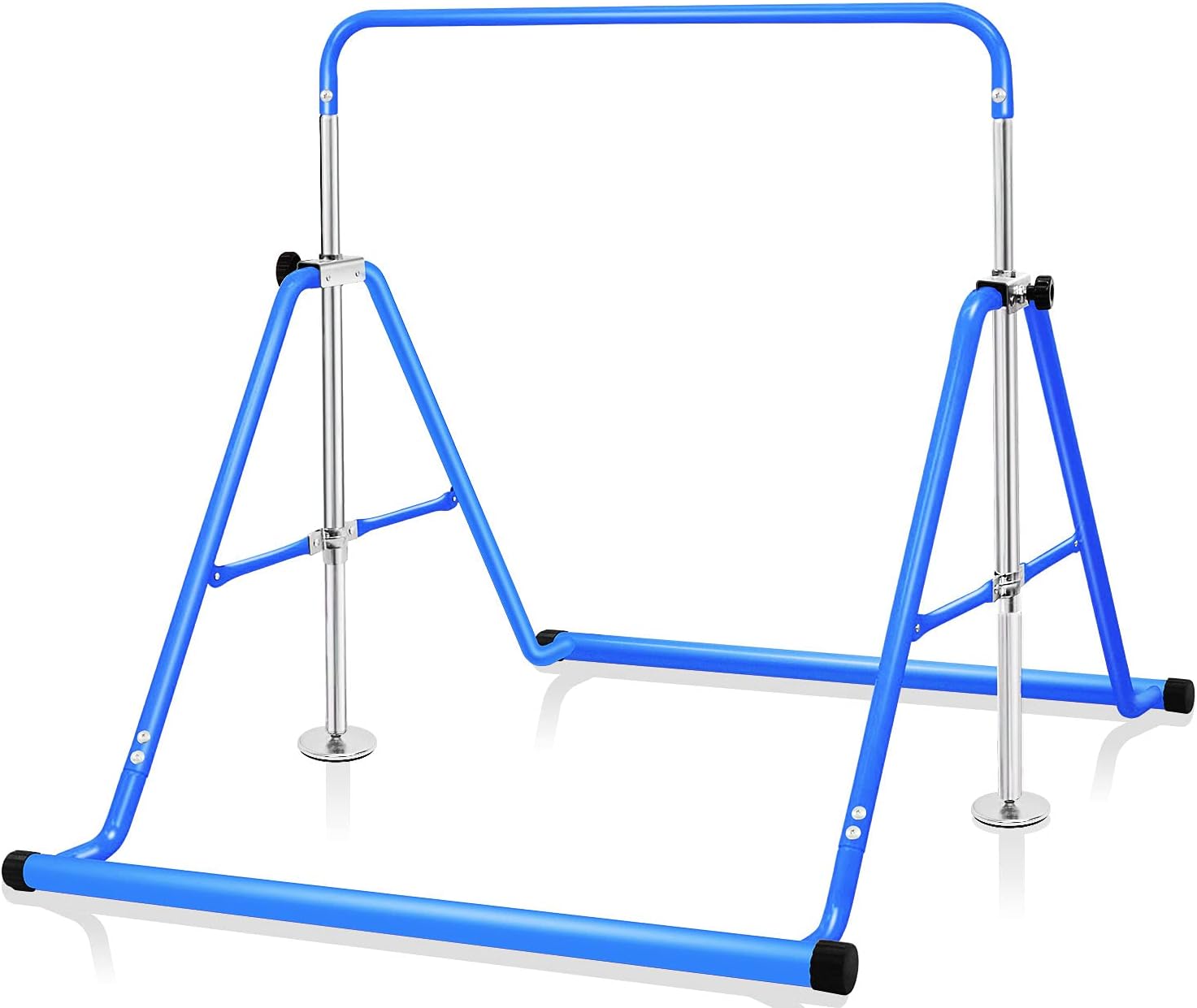 子供用 ぶら下がり鉄棒 折りたたみ 多機能 てつぼう 耐荷重(約)70kg 5段階高さ調節可 室内用 屋外使用可 逆上がり【カラー】ブルー 【本体サイズ(約)】使用時:幅99.5cmx奥132cmx高さ85cm〜130cm 本体重量(約):10kg 本体素材:スチール/ゴム 耐荷重(約):70kg 収納サイズ:幅99.5cmx奥行26.5cmx高さ110cm 適当対象:6−12歳の子供様に適用します。【高さ5段階調節可能】高さの順次には85cm/96cm/107cm/118cm/130cmまで高さ調整できます。三角形の構造は頑丈で、子供の成長に合わせて、長く使えます。いつでも楽しく鉄棒でぶら下がり!【安定性と耐久性】錆にくい耐久性が抜群構造であります。滑り止め設計で、さらに下に滑り止めマットを敷いて、床を傷つけないし、安定性も一層アップします。【成長を促進する】手、足、目の協応能力が育つきっかけにもつながります。ぶら下がり鉄棒を利用し、運動能力、筋力、骨などが、自然と養われます。子供の骨格成長を促進します。【折りたたみ式】使わない時に鉄棒をスリムに収納できます。スペースを取りません。【梱包】日本語組立・取扱説明書添付あり。