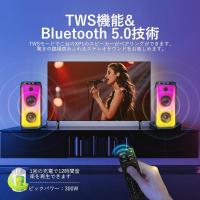 ワイヤレスマイク スピーカーセット Bluetooth5.0対応 家庭用 大容量バッテリー カラオケセット 拡声器 充電式 UHFワイヤレスマイク2本付き PAセット パワー40W音質サブウーファー&Bluetooth 5.0:ワイヤレスマイクスピーカーセットは高品質のサブウーファーが2つ搭載されており、パワフルでクリアな音を届けます。お気に入りの曲を素晴らしい明瞭さと深みで楽しむことができます。超高レベルのBluetooth 5.0技術により、より安定したクリアな音声伝送が可能で、ライブロックミュージックを体験できます。充電式で長持ち&2つのUHFワイヤレスマイク:充電式バッテリーが内蔵されており、最大12 時間の再生時間を提供します。パーティー中に電池切れの心配はありません。このマシンは一晩中音楽を続けることができます。最新のUHF技術を採用した2つのワイヤレスマイクは、安定した信号を提供し、歌唱中の煩わしいケーブルを排除します。TWSステレオシステム対応:TWS機能により、同一のスピーカーをワイヤレスで接続し、ステレオサウンドを楽しむことができます。カラオケでも音楽再生でも、TWSステレオサラウンド機能はオーディオ体験を次のレベルに引き上げ、友人や家族を驚かせます。多機能で使いやすい:全ての機能がパネルに非常に分かりやすく表示されており、簡単に使用できます。Bluetoothを介してデバイスに接続するか、USB/TFカードおよびAUXモードを使用して音楽を再生できます(USBおよびTFカードモードでは録音機能も使用できます)。お好みの再生モードを選択する柔軟性があります。カラフルなディスコライト:パーティーボックスはユニークなディスコライティングデザインを持っています。ライトは音楽のリズムに合わせて跳ね、さまざまな照明効果に切り替えることもできます。パーティーや集会に最適なクールでダイナミックな雰囲気を作り出します。お気に入りの音楽を聴きながらライトショーを楽しむことができ、忘れられないカラオケ体験を提供します。素晴らしい贈り物:当社のスピーカーは、音楽を愛する人、パーティーを楽しむ人、または自宅で高品質の音声を楽しみたい人にとって素晴らしい贈り物です。多用途で実用的な贈り物として誰もが喜ぶことでしょう。誕生日プレゼント、クリスマスプレゼント、ホリデーギフトに最適です。
