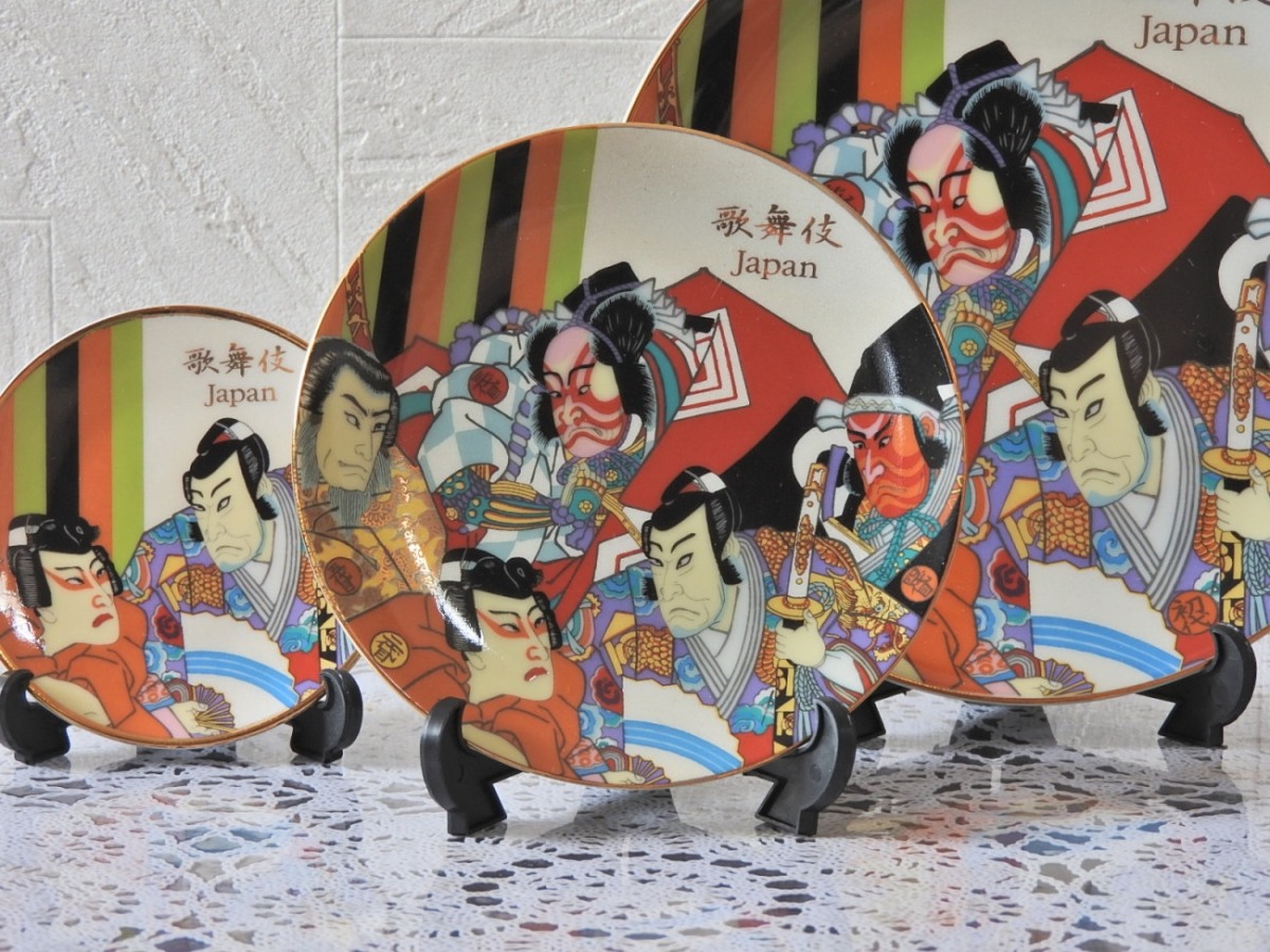 歌舞伎画の丸皿<大>"KABUKI" Round shape dish (L)