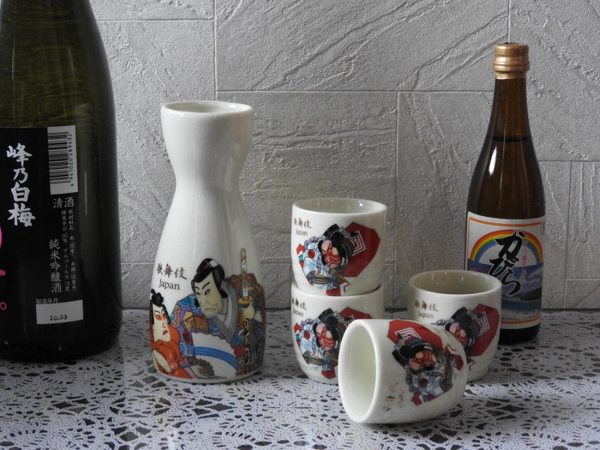 オシャレな伝統的歌舞伎絵柄酒器セット