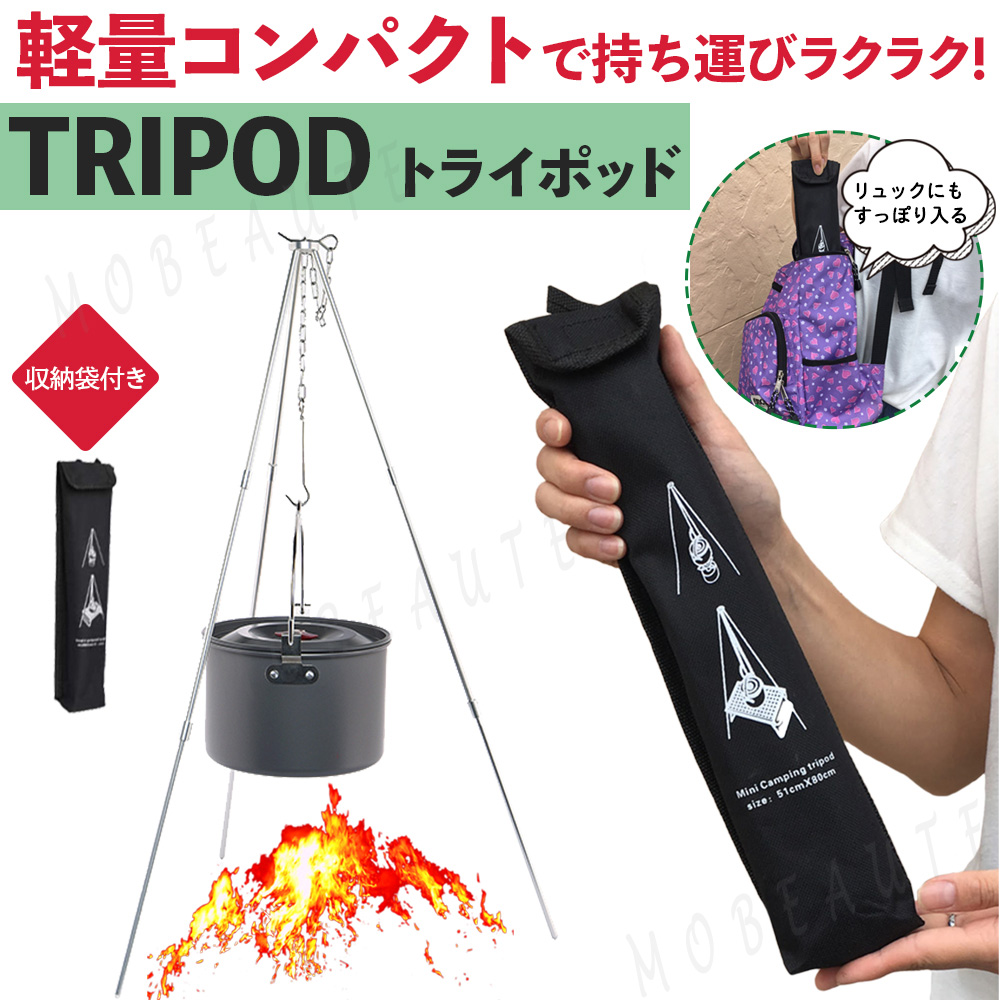 アウトレット 数量限定 トライポッド 三脚 焚き火 収納袋付属 焚き火台 焚火 スタンド キャンプ アウトドア BBQ