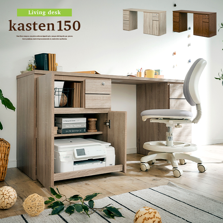 プリンター収納付 ワイド リビングデスク 学習机 学習デスク パソコンデスク ユニットデスク シンプル おしゃれ 収納 kasuten(カステン) 幅150cm 2色対応
