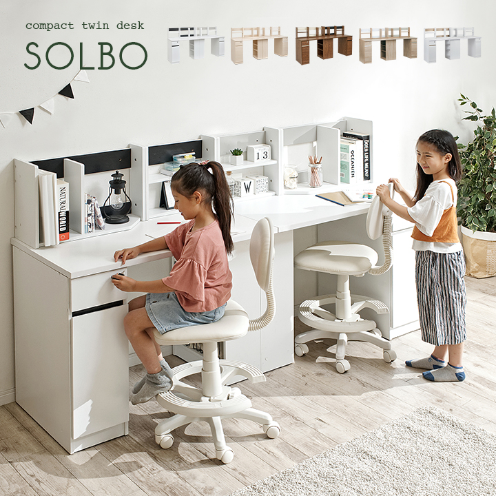 コンパクト ツインデスク 学習机 システムデスク パソコンデスク 学習デスク 机 リビングデスク シンプル 木製 SOLBO(ソルボ) 4色対応