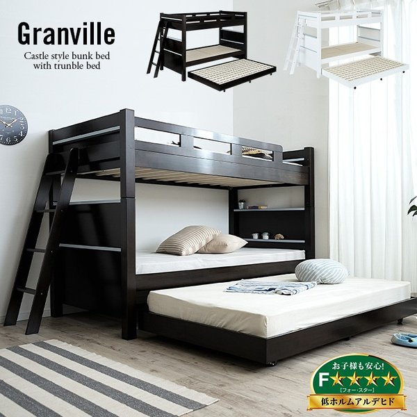 耐荷重300kg 耐震設計 分割可能 三段ベッド 3段ベッド おしゃれ 木製 子供用二段ベッド スライドベッド 親子ベッド Granville2(グランビル2) 2色対応
