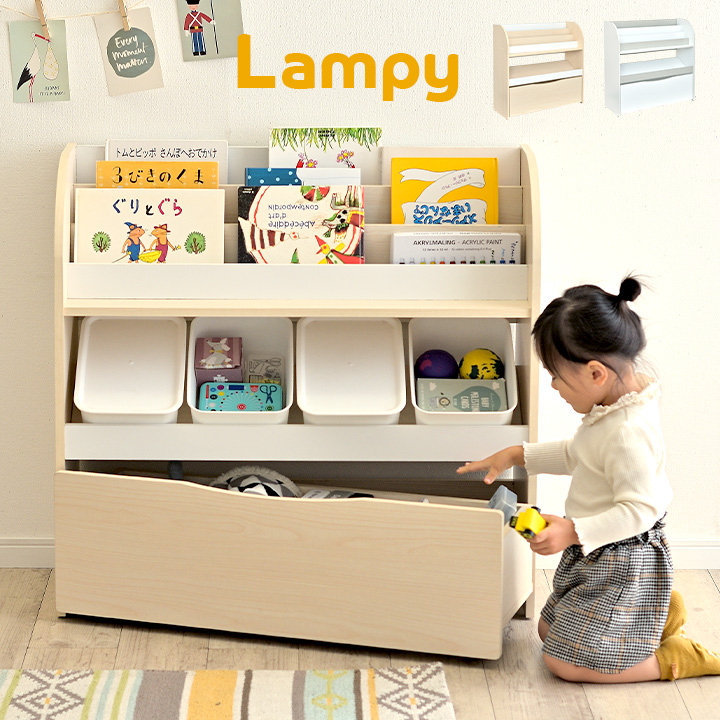 絵本ラック 絵本棚 本棚 ブックラック ブックシェルフ キッズラック おもちゃ箱 キャスター 引き出し 幅83cm Lampy2(ランピー2) 2色対応
