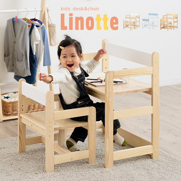 高さ調節機能 キッズデスク キッズチェア キッズテーブル 木製 昇降式 ミニデスク 子供用家具 kids キッズ デスク&チェア セット Linotte(リノッテ) 3色対応
