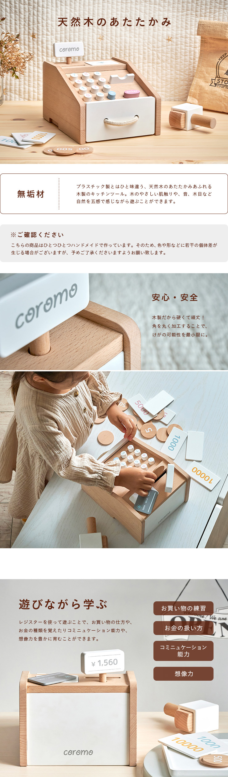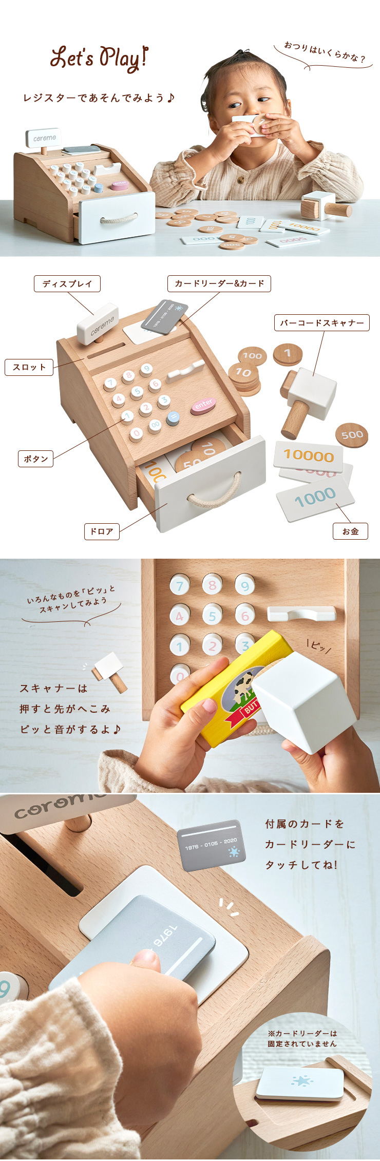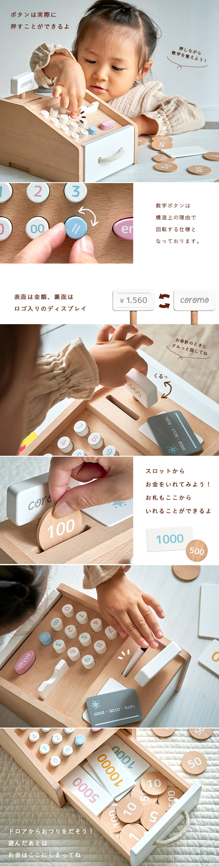 ラッピングセットプレゼント中 ままごと おままごと レジ お金 お札 コイン カード お店やさん かわいい お店屋さん ごっこ遊び 木製 レジスター coromo(コロモ)