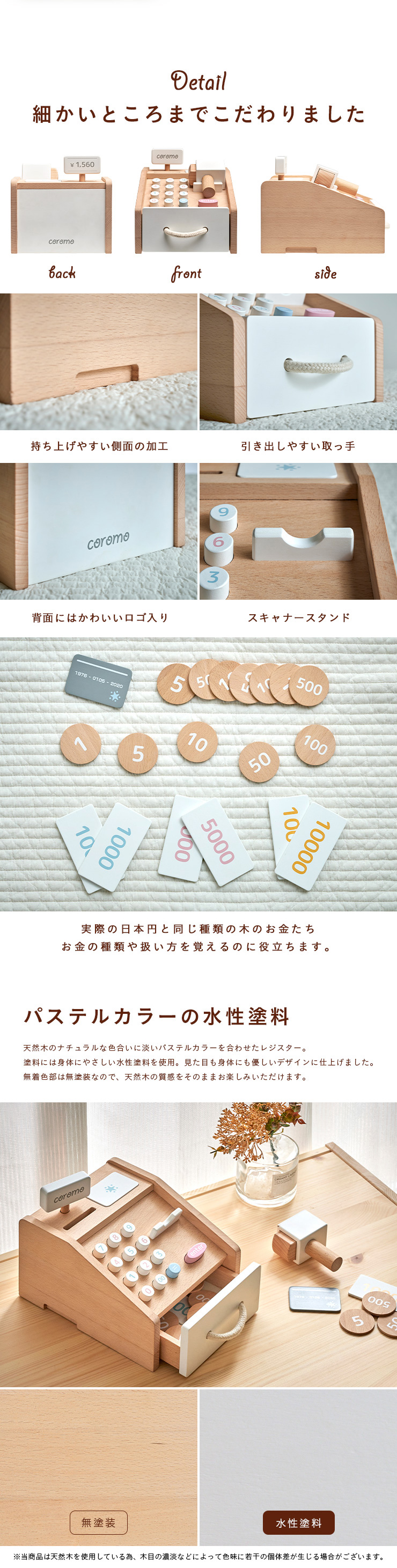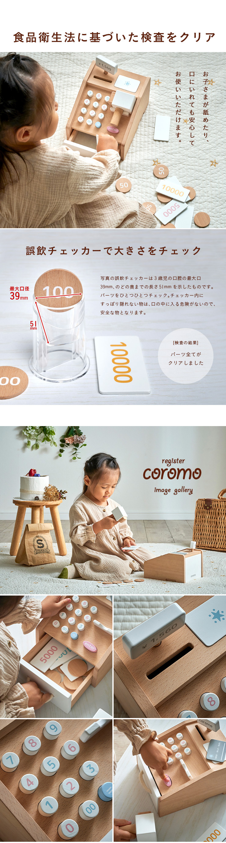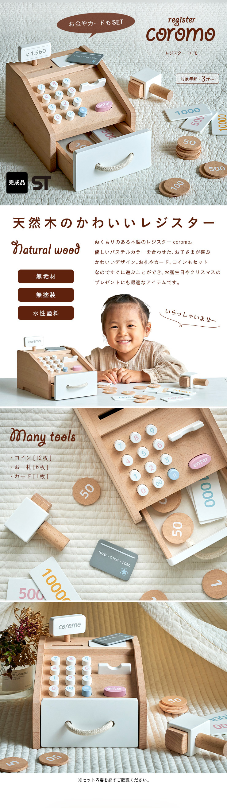 ラッピングセットプレゼント中 ままごと おままごと レジ お金 お札 コイン カード お店やさん かわいい お店屋さん ごっこ遊び 木製 レジスター coromo(コロモ)