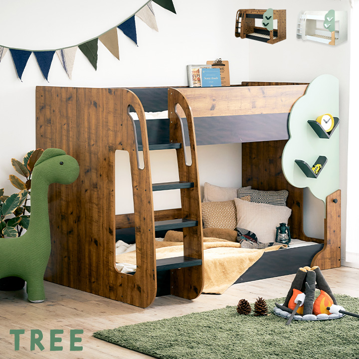 二段ベッド 大人用 子供 ツリー型のディスプレイラック付き 2段ベッド おしゃれ 子ども ロータイプ ローベッド 木製 低め TREE(ツリー) 2色対応