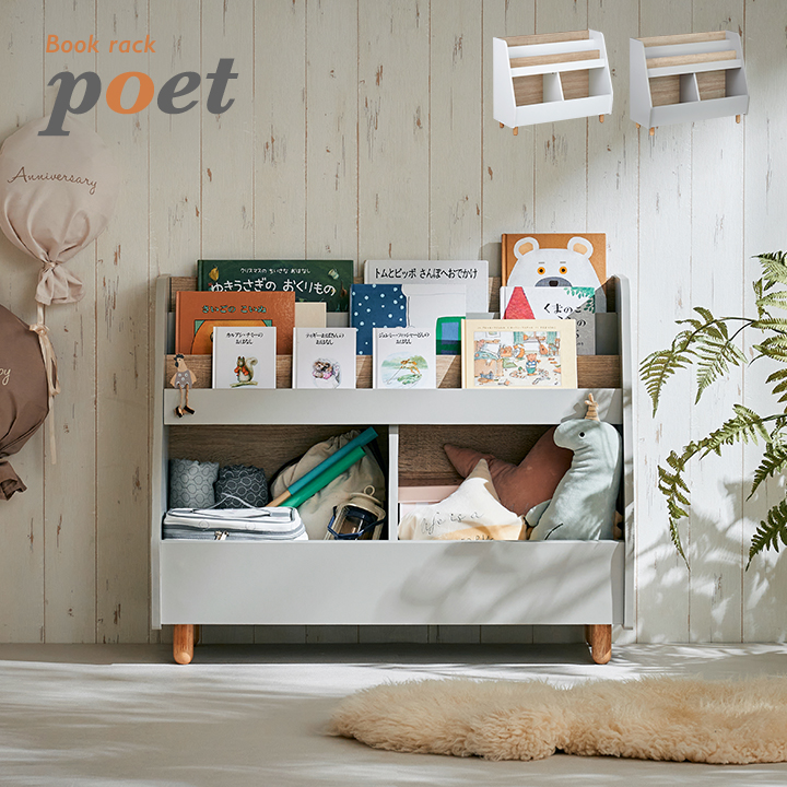 絵本ラック 絵本棚 幅82cm 本棚 ブックラック ブックシェルフ おもちゃ収納 おもちゃ箱 おもちゃ入れ おもちゃ棚 収納 ラック おしゃれ poet(ポエト) 2色対応