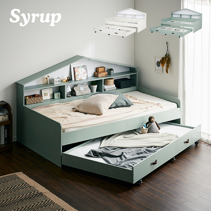 二段ベッド 大人用 子供 ハウス型サイド 宮付き 親子ベッド 親子ベット 収納式 スライドタイプ 2段ベッド 収納ベッド おしゃれ Syrup(シロップ) 2色対応