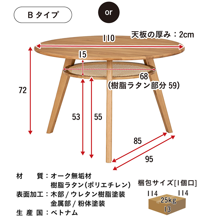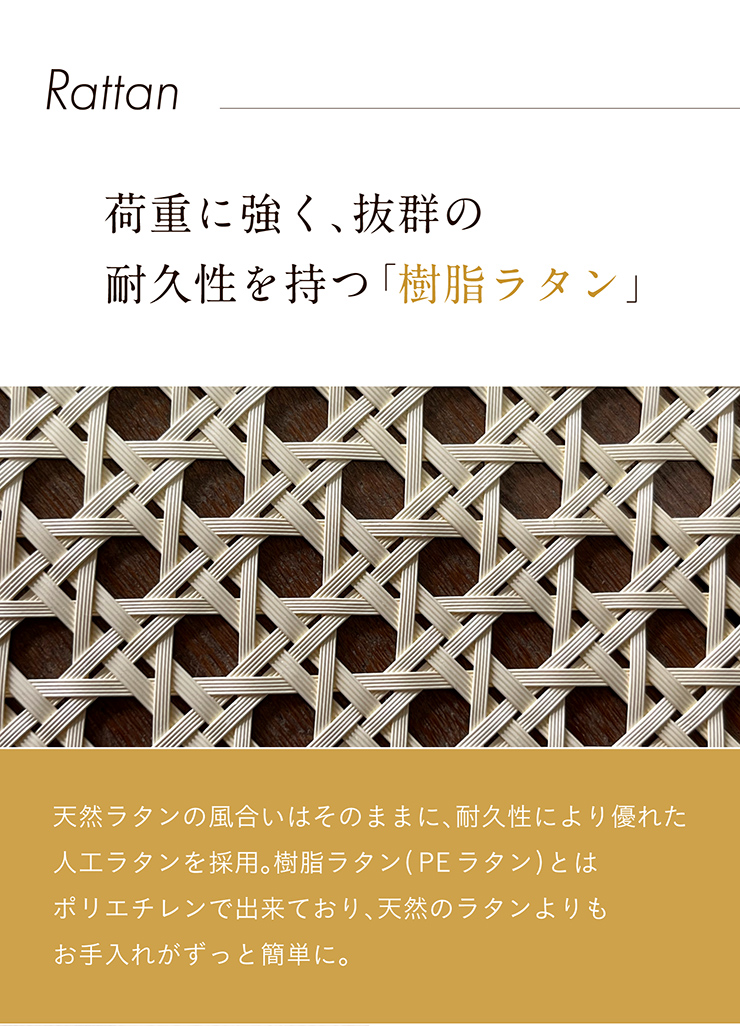本体:オーク無垢材・樹脂ラタン(ポリエチレン)