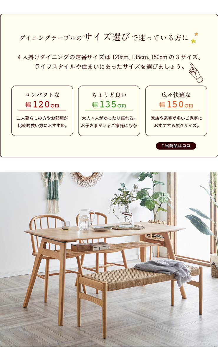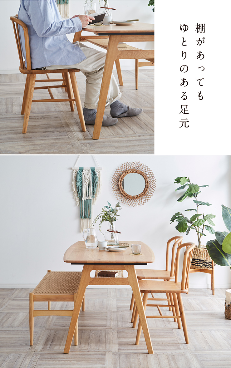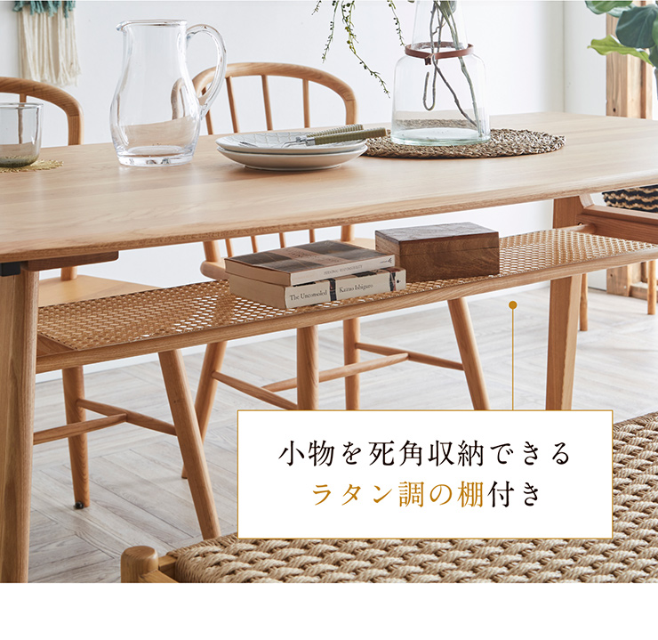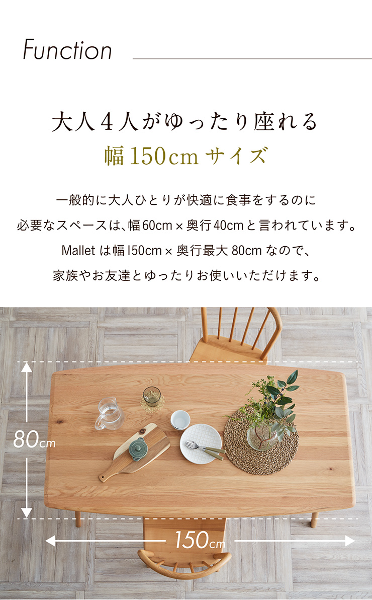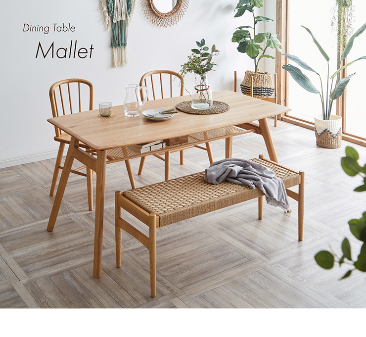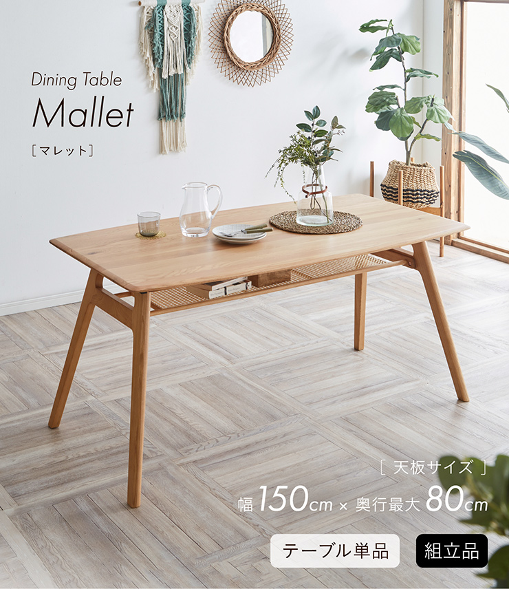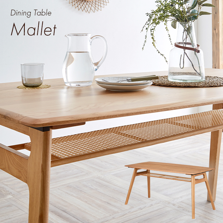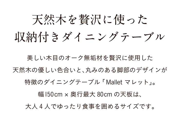 ダイニングテーブル 幅150cm Mallet(マレット) 単品 テーブル ダイニング リビング 4人掛け 収納付き 食卓テーブル 食卓用 作業台 オーク 無垢材 木製 おしゃれ
