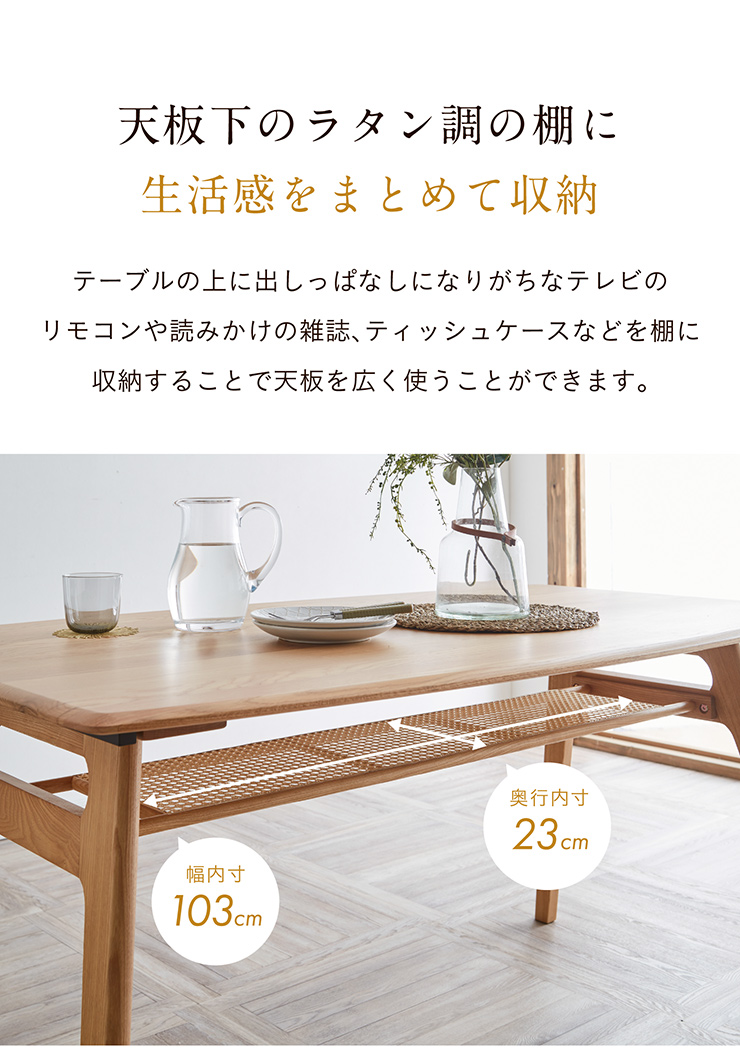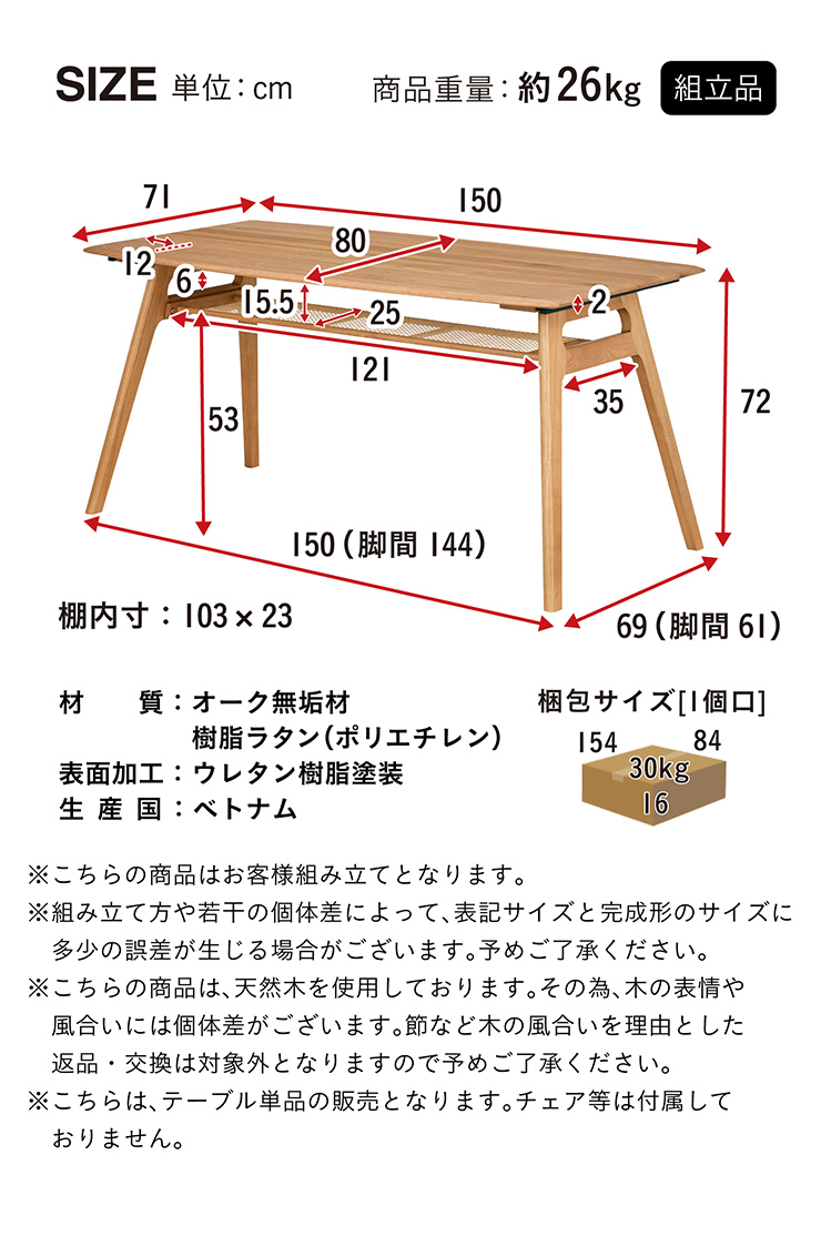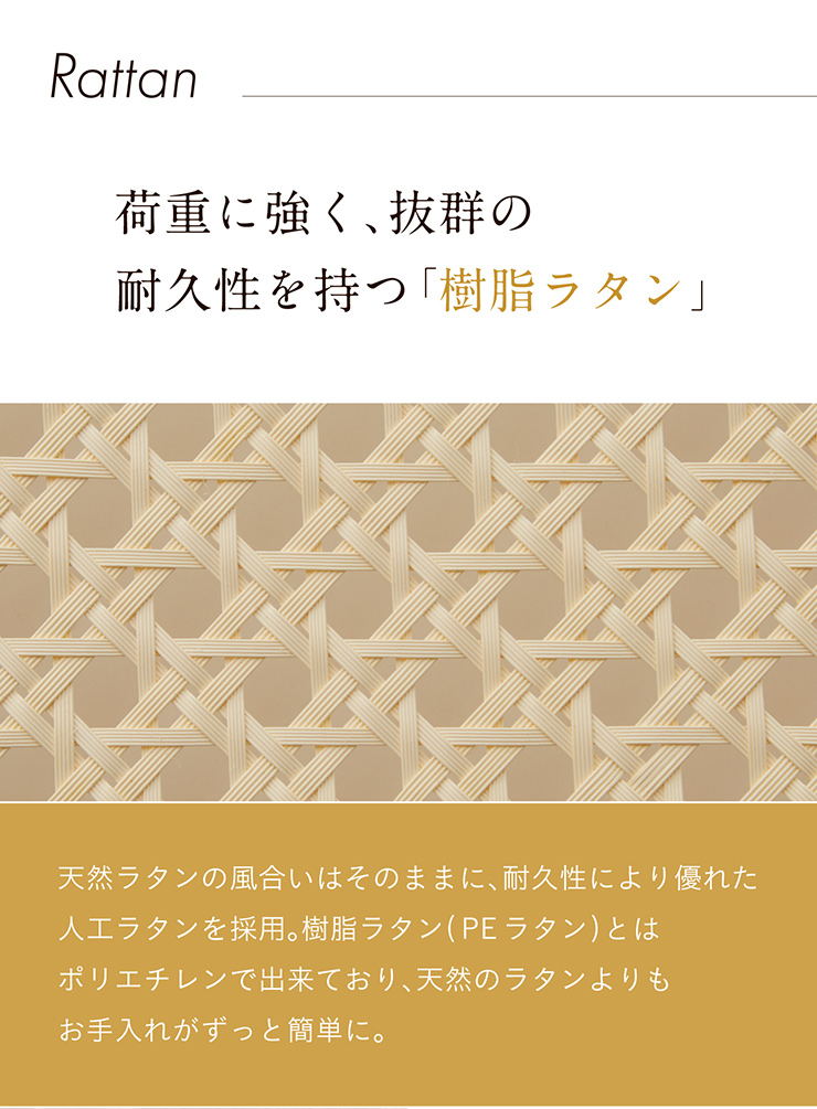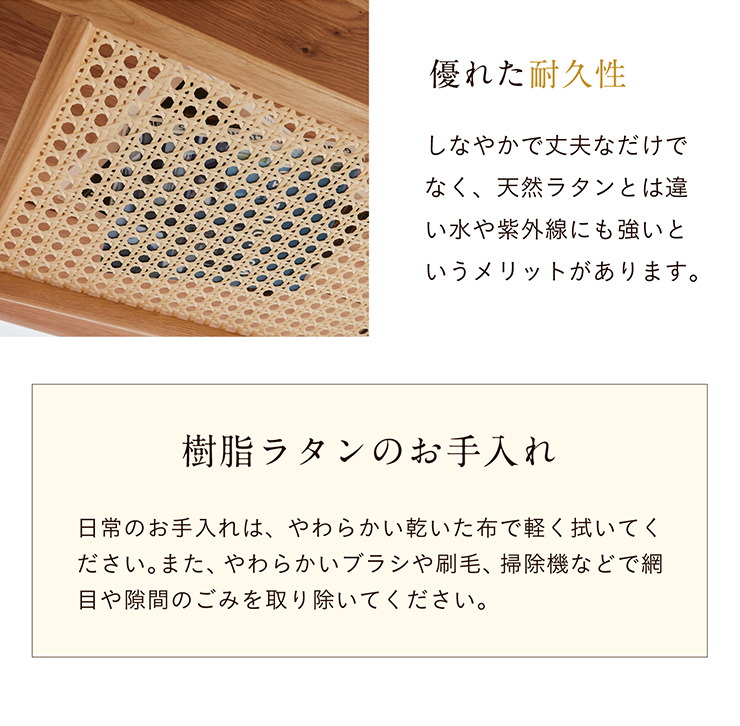 本体:オーク無垢材、樹脂ラタン(ポリエチレン)