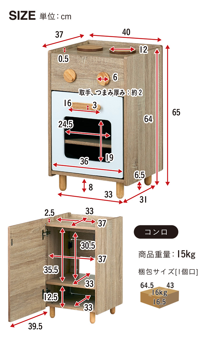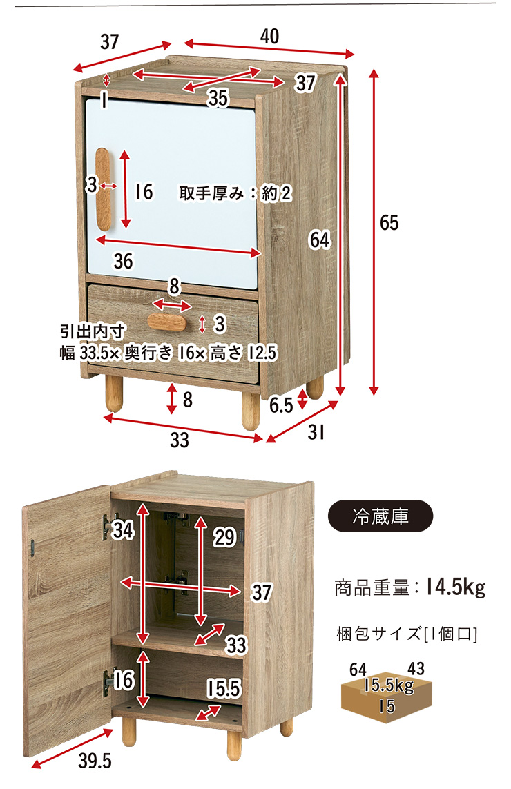 ・コンロ+冷蔵庫(ナチュラル/ホワイト)