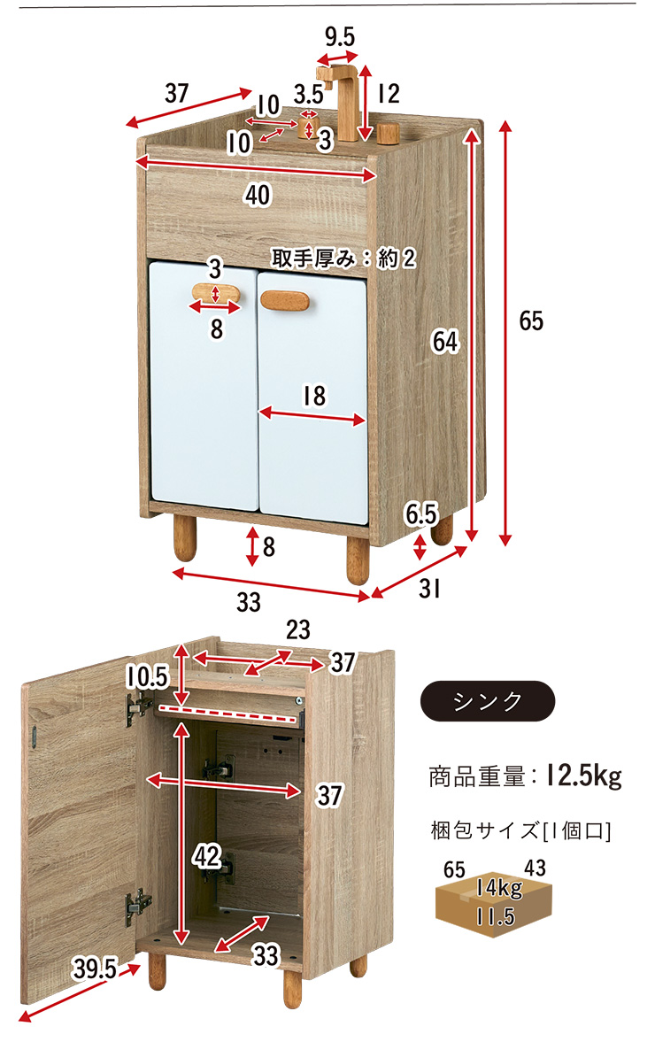 ・冷蔵庫+シンク(ナチュラル/ホワイト)