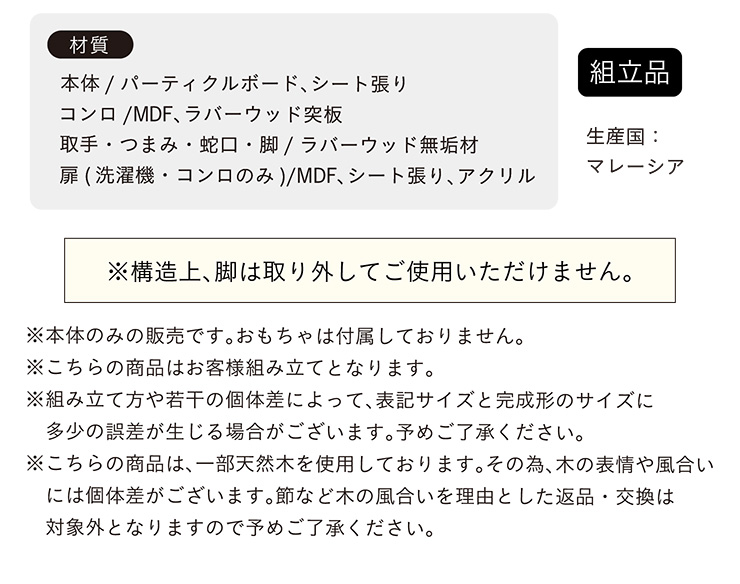 扉:(洗濯機・コンロのみ):MDF、シート張り、アクリル