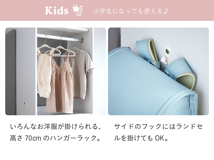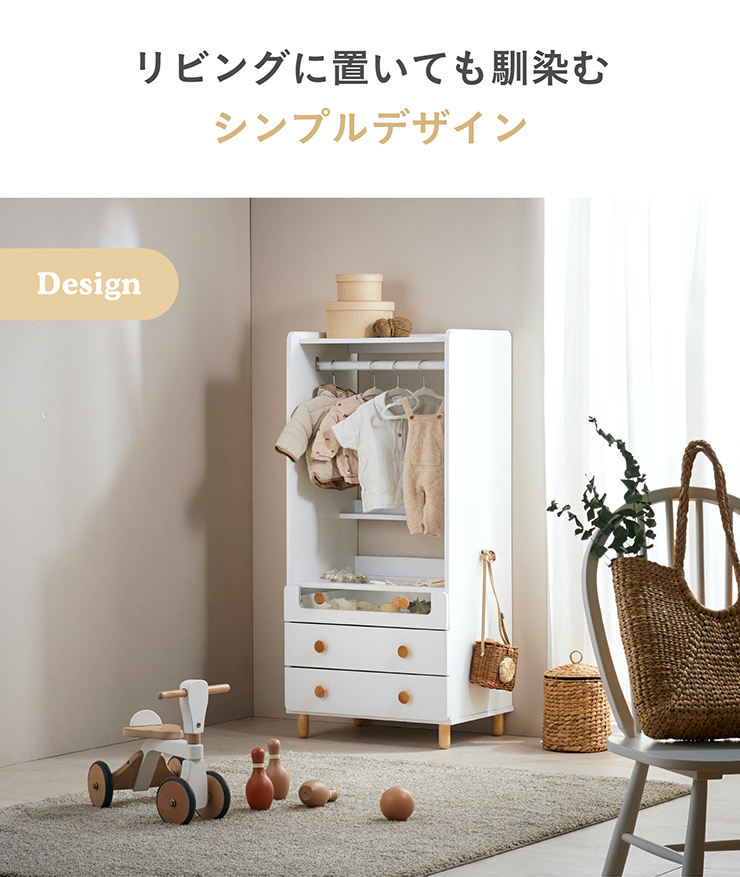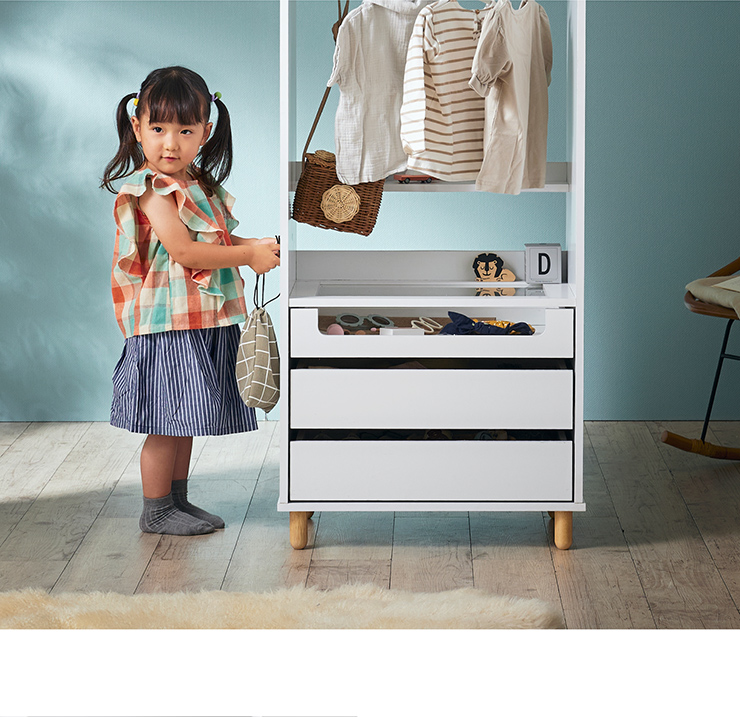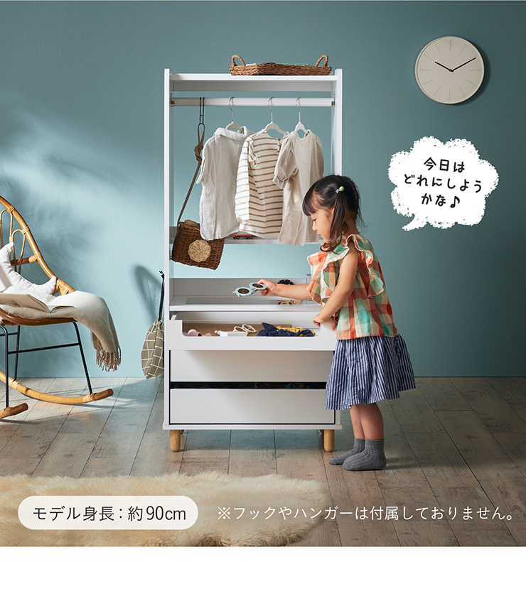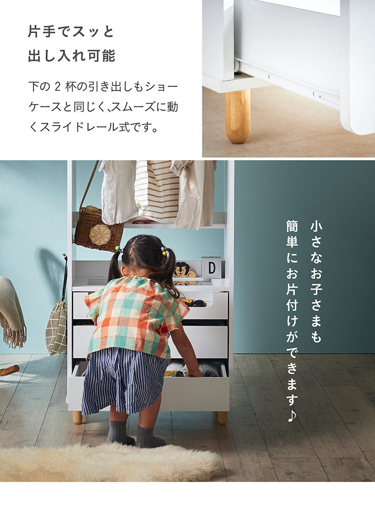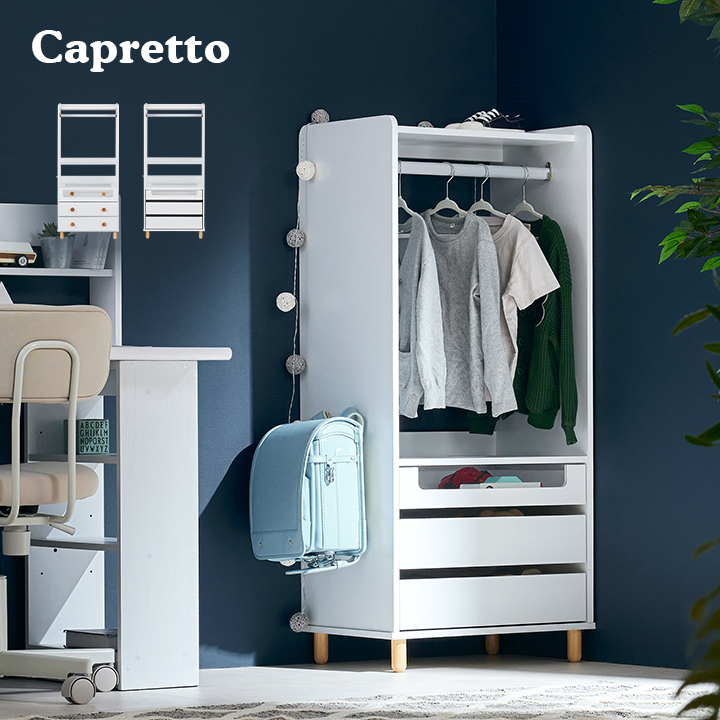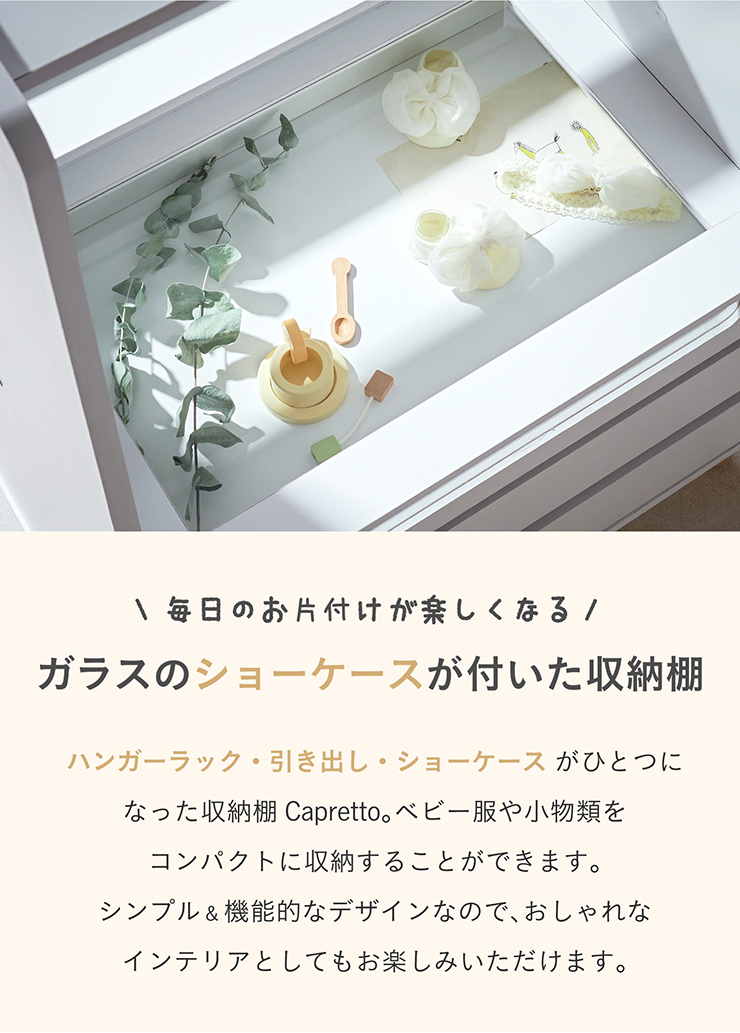 ハンガーラック 引出し ショーケース 衣類収納 小物収納 ペット用品収納 洋服掛け 子供用 子供部屋 かわいい ベビー服収納 Capretto(カプレット) 2タイプ対応