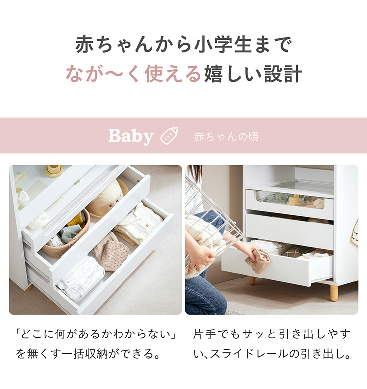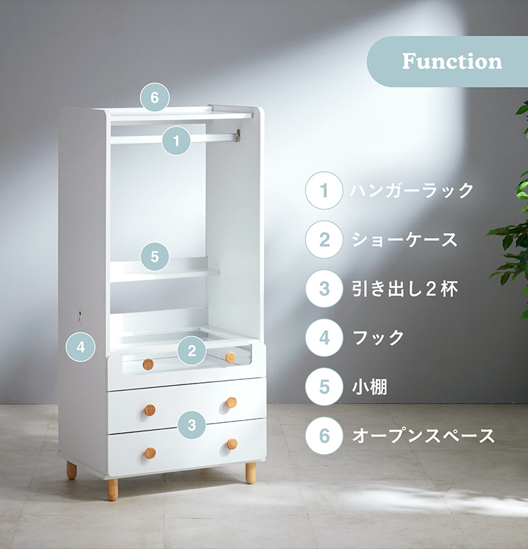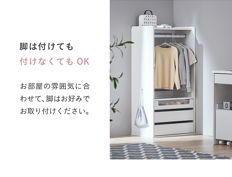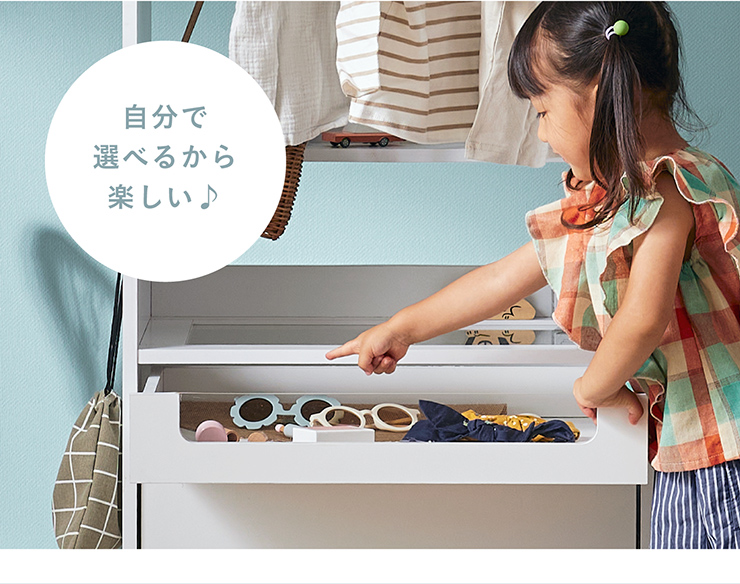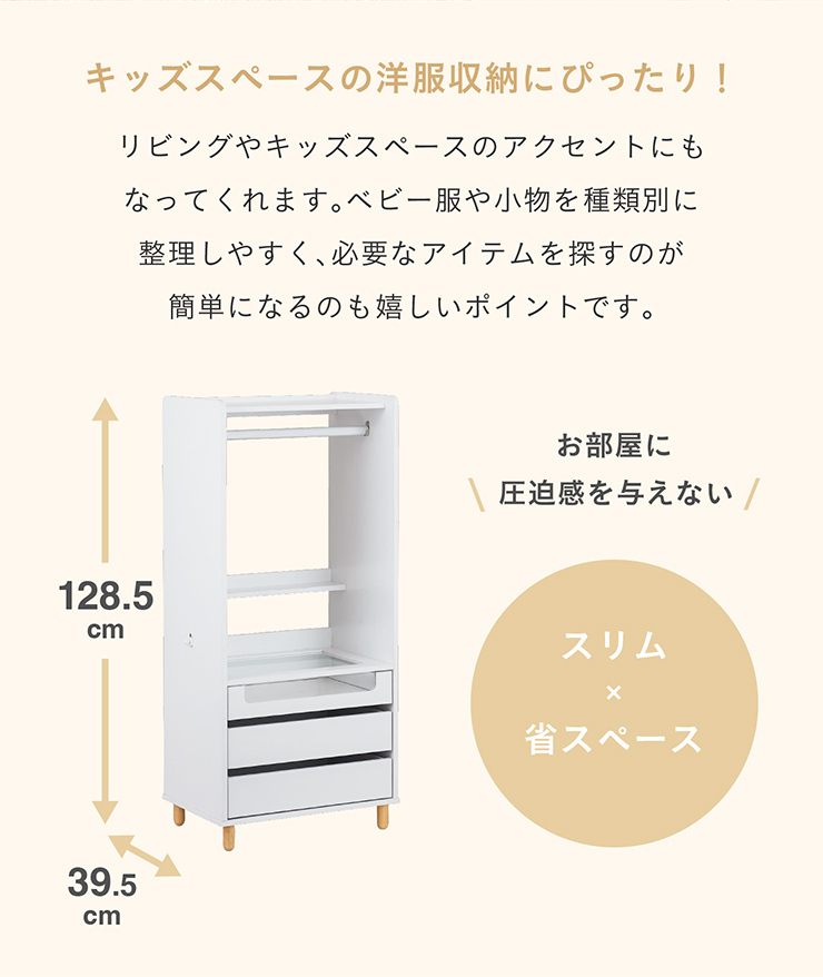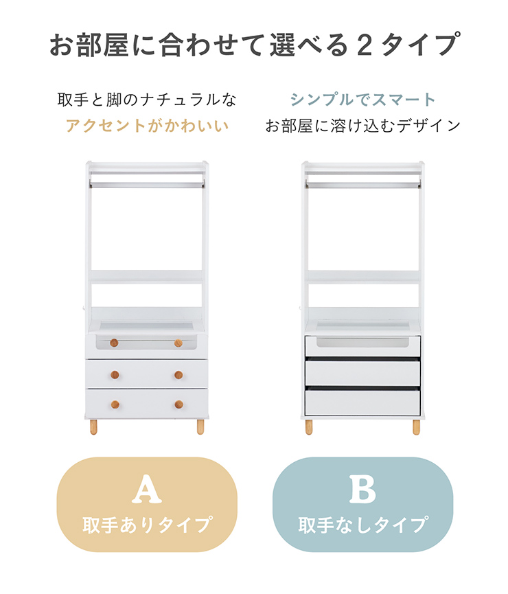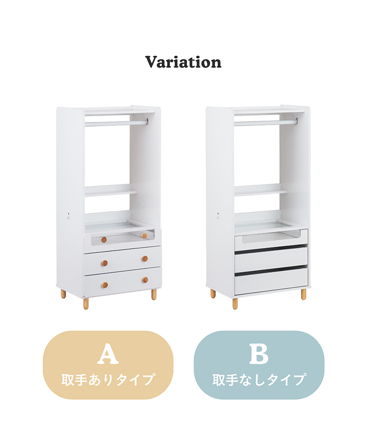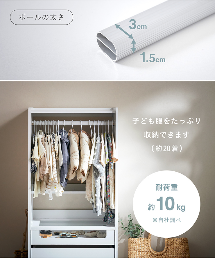 ハンガーラック 引出し ショーケース 衣類収納 小物収納 ペット用品収納 洋服掛け 子供用 子供部屋 かわいい ベビー服収納 Capretto(カプレット) 2タイプ対応