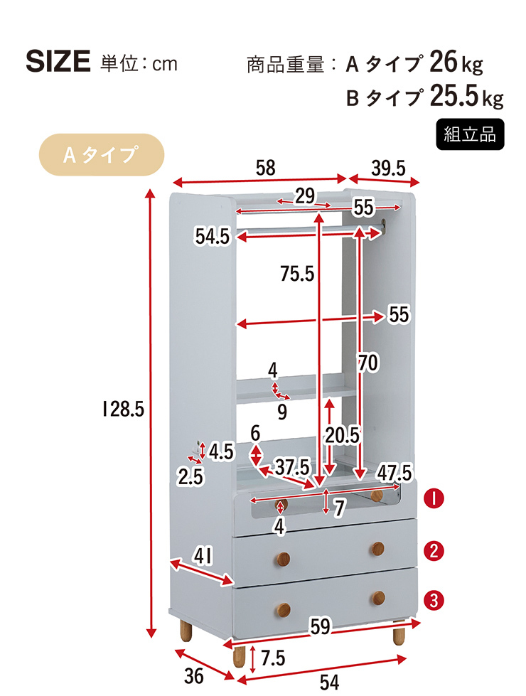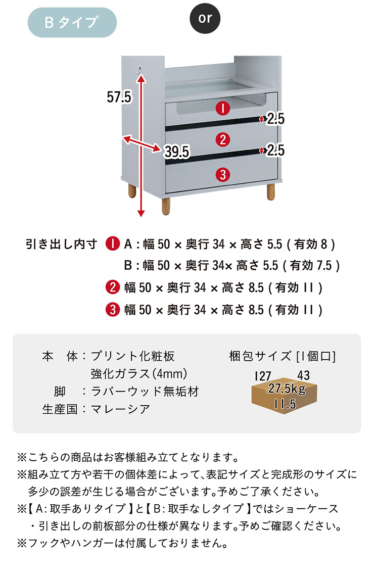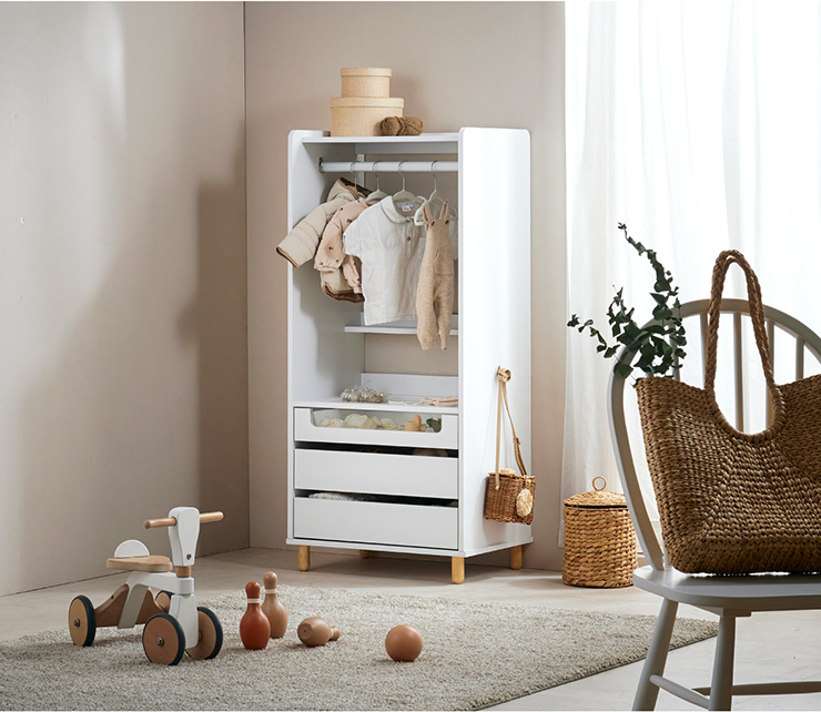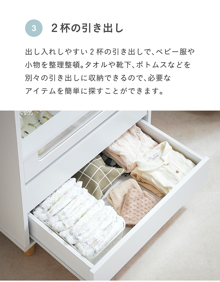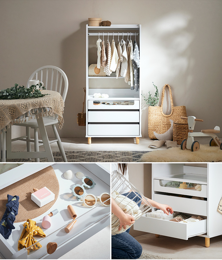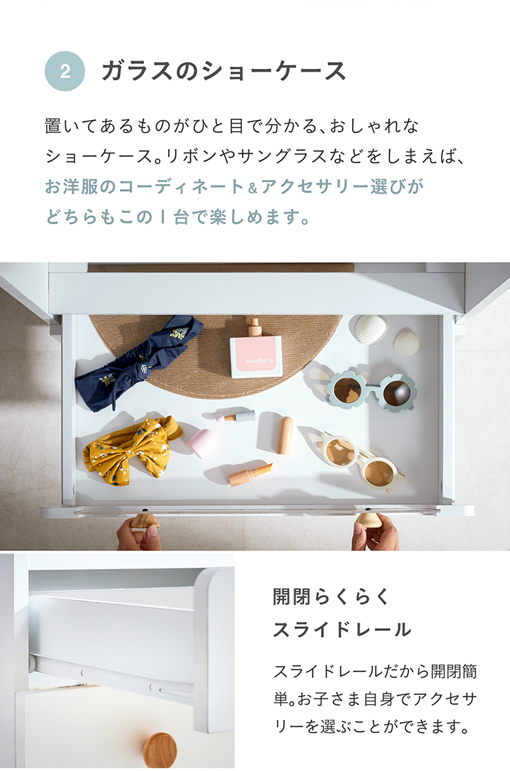 ハンガーラック 引出し ショーケース 衣類収納 小物収納 ペット用品収納 洋服掛け 子供用 子供部屋 かわいい ベビー服収納 Capretto(カプレット) 2タイプ対応