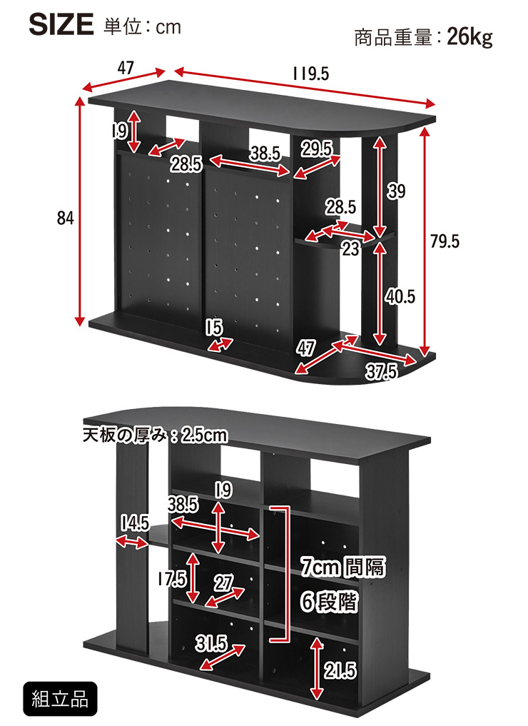 天板:合成樹脂化粧パーティクルボード(塩化ビニル)