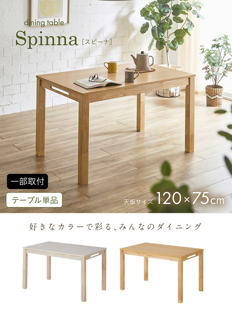ダイニングテーブル 幅120cm 単品 ダイニング 食卓テーブル ミーティングテーブル 作業台 長方形 木製 4人掛け ナチュラル おしゃれ Spinna(スピーナ) 2色対応