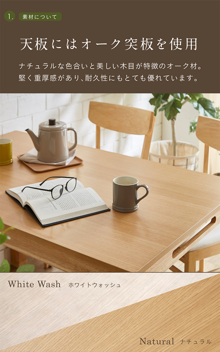 材質:オーク突板、MDF、ラバーウッド無垢材