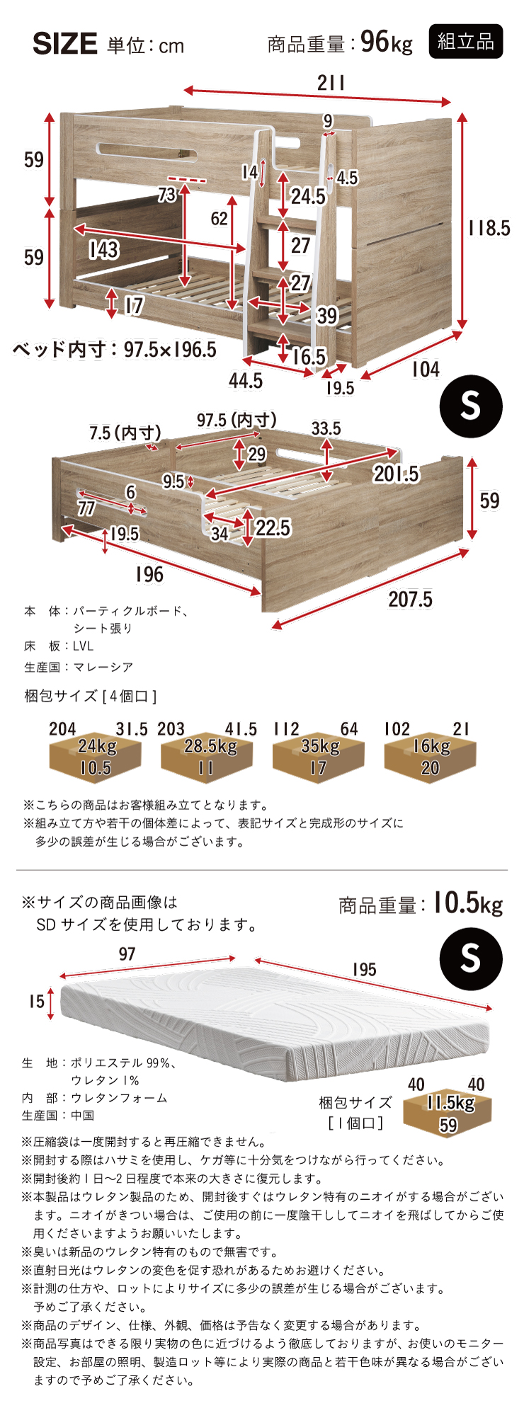 二段ベッド 2段ベッド 子供 ロータイプ 宮付き Sサイズ マットレス 2枚セット おしゃれ コンセント付き Britt(ブリット)+Unity(ユニティ) 3色対応