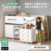 システムベッド 子供 大人用 ロフトベッド シングルベッド ロータイプ 学習机 チェスト おしゃれ 北欧 組み替え可能 Sesame(セサミ) 4点セット 2色対応
