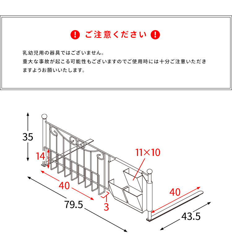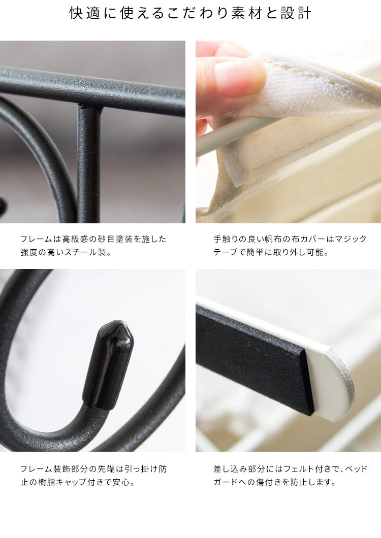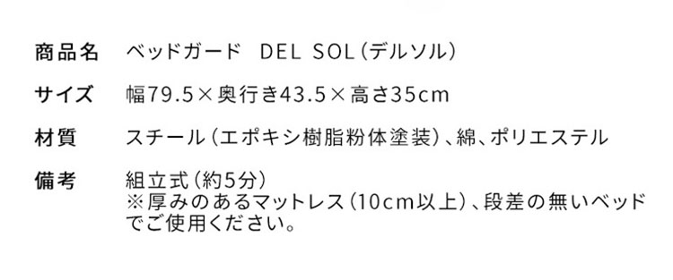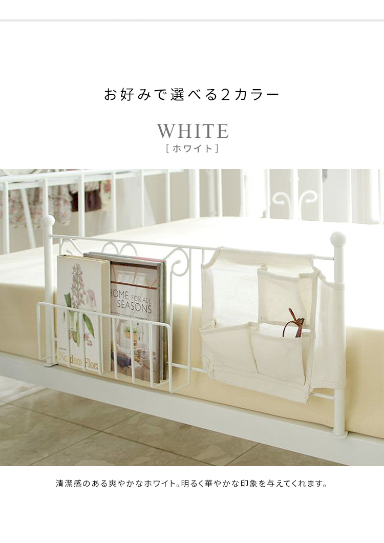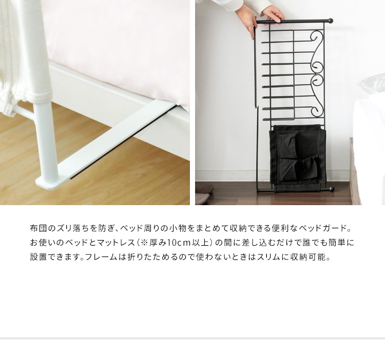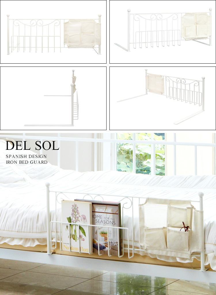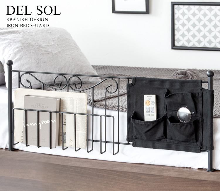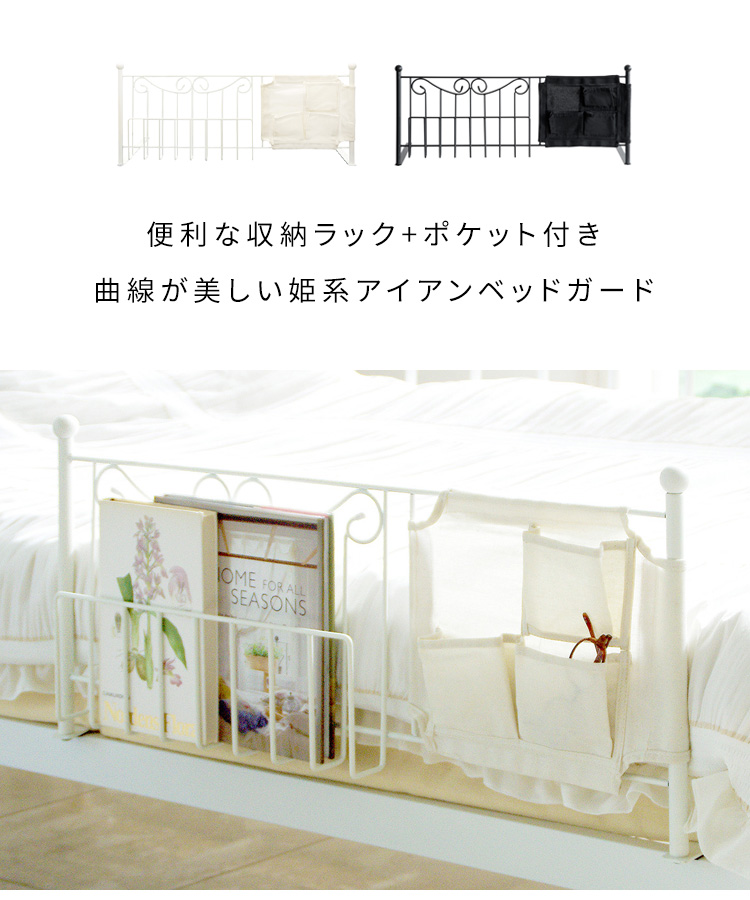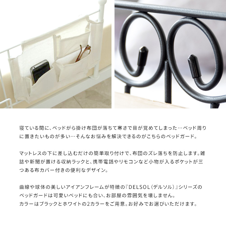 ベッドフェンス サイドガード ベットガード ベットサイド ベッド柵 転落防止 収納付き 小物入れ おしゃれ 幅79cm 収納付き 姫系ベッドガード DEL SOL 2色対応