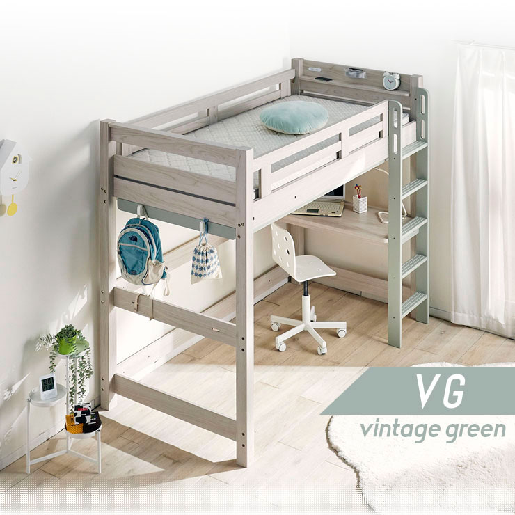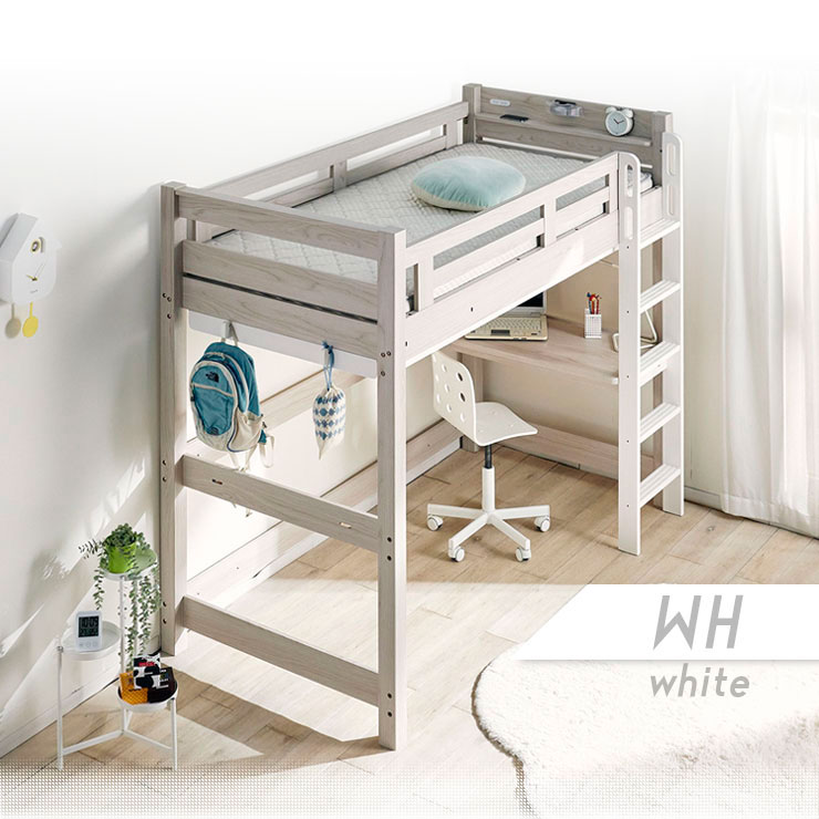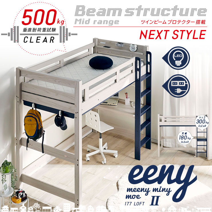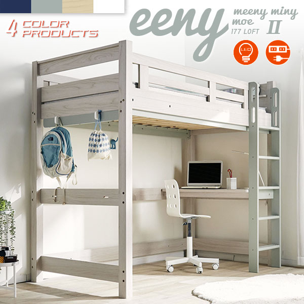特許構造 ロフトベッド システムベッド ロフトベット デスク 子供 ハイタイプ 机付き 木製 宮付き おしゃれ 頑丈 eeny(イーニー) Hi basic H176cm 4色対応