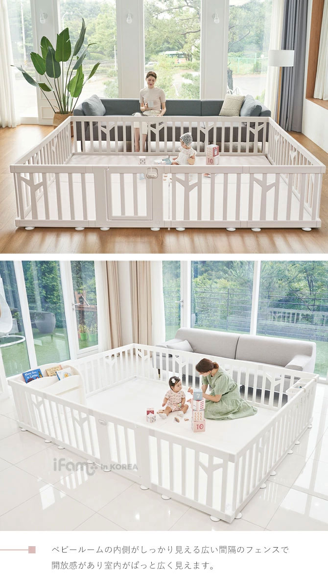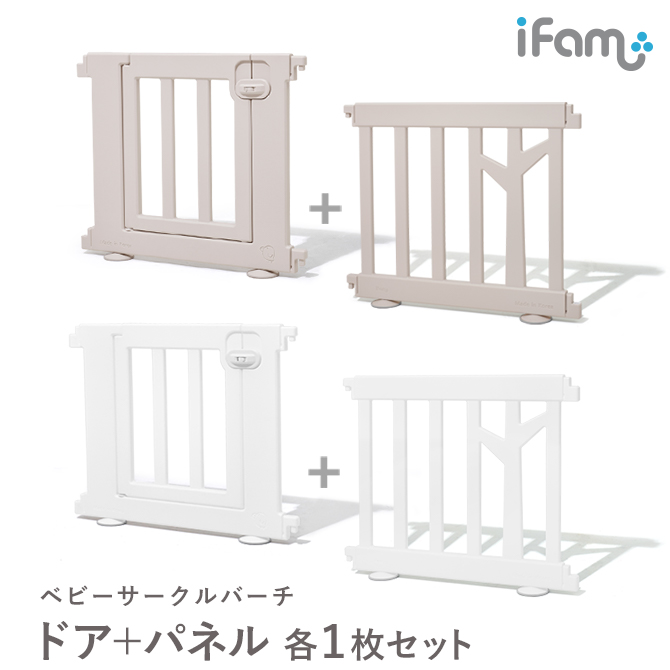 ベビーゲート プレイヤード ベビーフェンス ガード 木製 扉付き 柵 フェンス ifam(アイファム) ベビーサークル BIRCH(バーチ) ドア+パネル 各1枚セット 2色対応