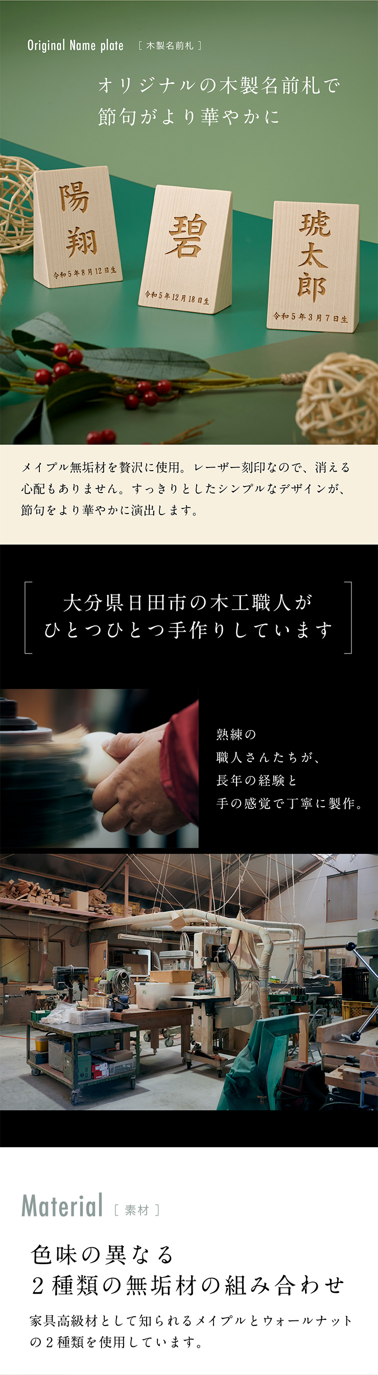 ウォルナット無垢材、メイプル無垢材