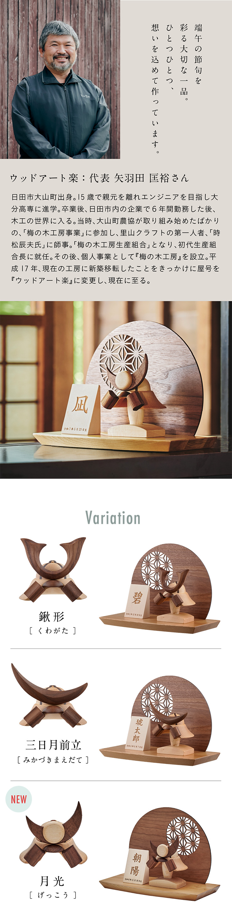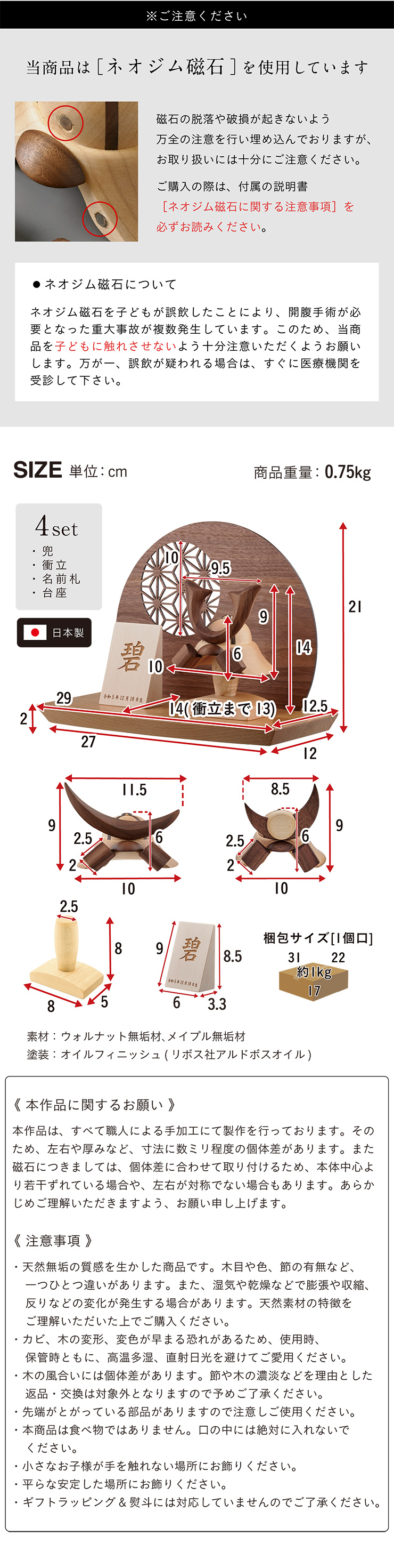 日本製 名入れ無料 木製兜 4点セット 五月人形 兜 兜飾り こどもの日 初節句 男の子 端午の節句 飾り 置物 雑貨 無垢材 モダン コンパクト ハンドメイド 手作り
