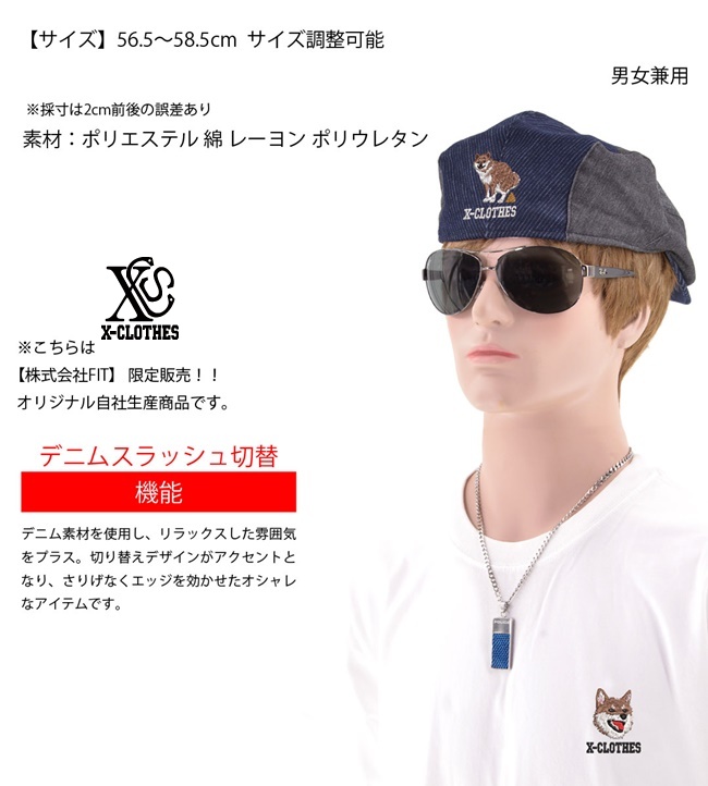リアル 犬 猫 ワンポイント 刺繍 帽子 デニム スラッシュ 切替 ハンチング メンズ ベレー帽 レディース 雑貨 グッズ 自社ブランド 柄 くまモン