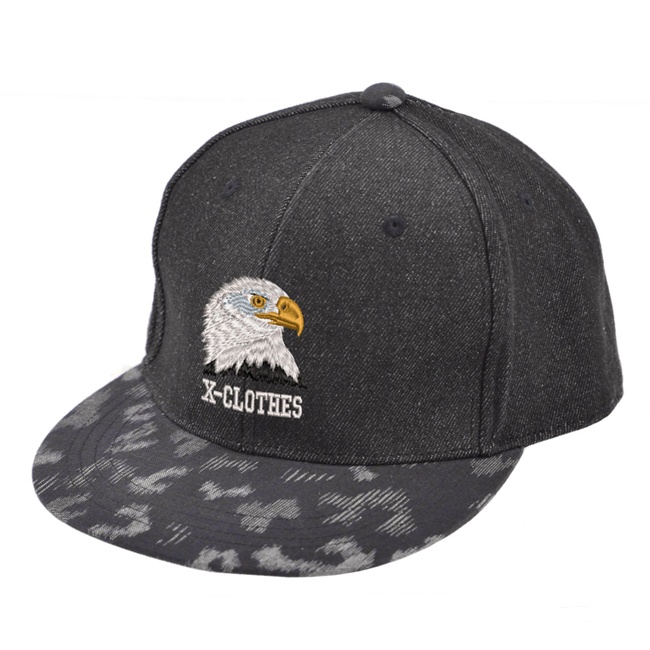 リアルシマエナガ 馬 パンダ ワンポイント 刺繍 帽子 久留米絣 デニム ヒサシ キャップ メンズ フラットバイザー スナップバック レディース
