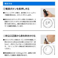 息を吹きかけるだけで簡単に呼気中アルコール濃度を測定することができます。(測定結果はあくまで目安です)