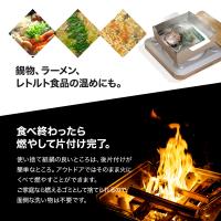 | 使用上の注意 | ・鍋の中に水を入れてから火に掛けてください。 ・空焚きは絶対におやめください。 ・電子レンジ、オーブン、オーブントースターでは使えません。 ・ラーメンや鍋物などの汁物の料理のみにご使用ください。 ・鍋の容量を超える食材を入れると危険ですのでご注意ください。 ・炎が鍋の底面が出て側面に当たらないようにご注意ください。 ・調理中は目を離さないでください。 ・使用後は内側を水で洗うかティッシュ等で拭いてから捨ててください。 ・内容物を入れたまま長時間放置しないでください。 |