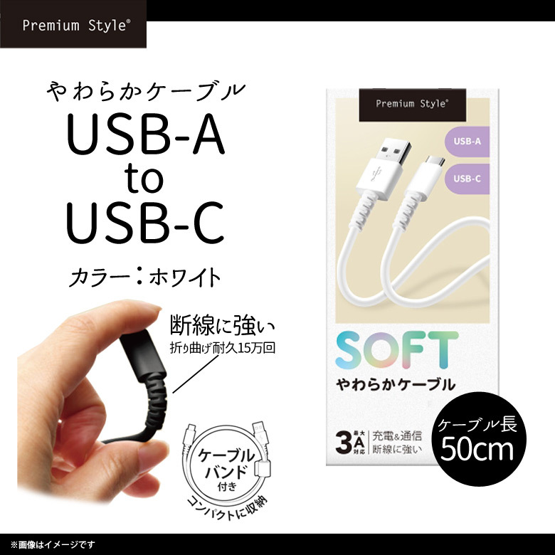 Type-C ケーブル 充電ケーブル PG-YWCA05WH 8546 USB-A to USB-C ケーブルバンド付き 50cm ホワイト PGA