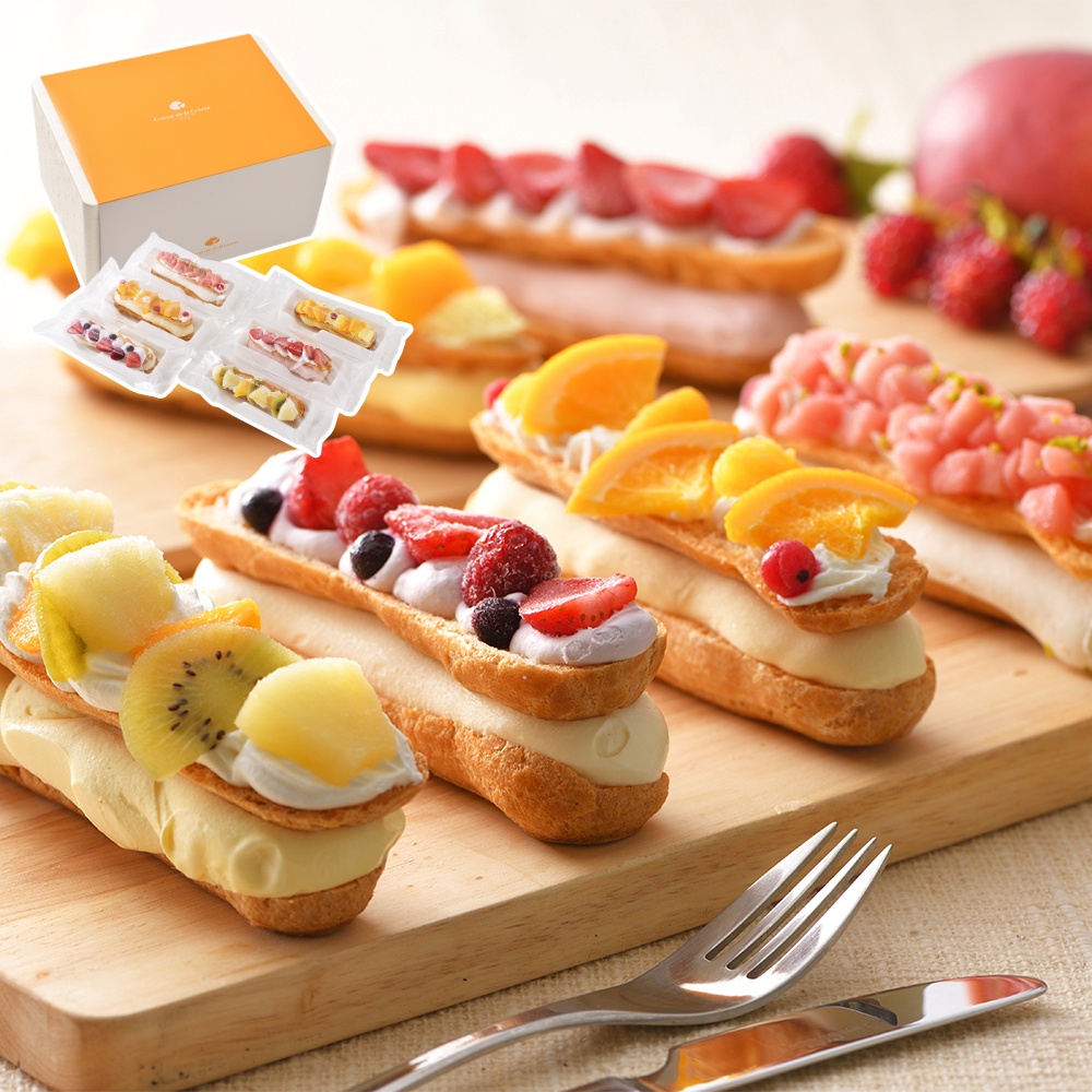 シュークリーム専門店「クレーム デ ラ クレーム」がお届けするエクレアタイプのシューアイス。フルーツや彩り鮮やかなクリームで華やかに飾りつけたまるでデコレーションケーキの様なシューアイスです。