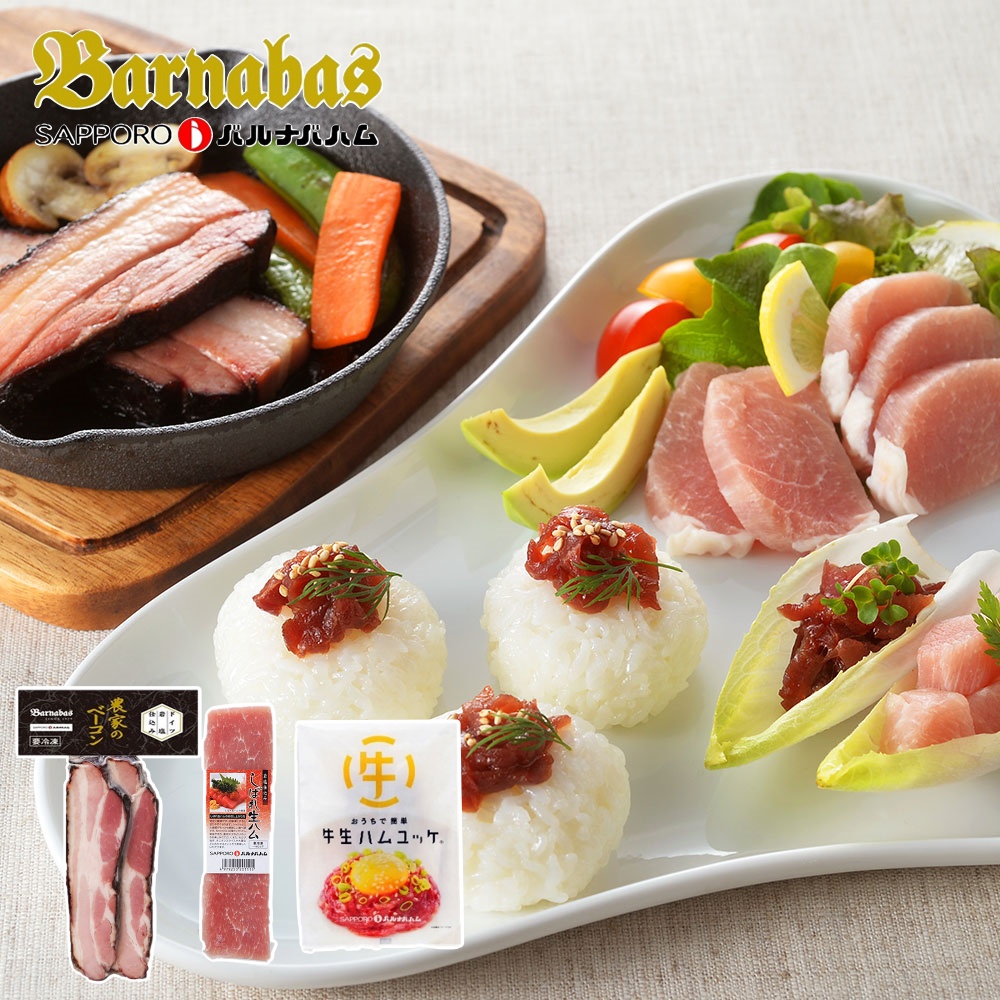 札幌バルナバフーズ しばれ生ハム 牛生ハムユッケ&農家のベーコンステーキ