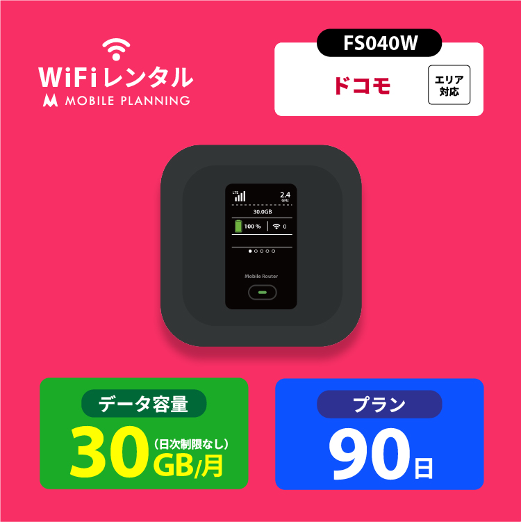 ポケットwifi ドコモ レンタル 3ヶ月 wifi レンタル ポケットwi-fi レンタルwifi 90日 wi-fi レンタル docomo 30GB FS040W
