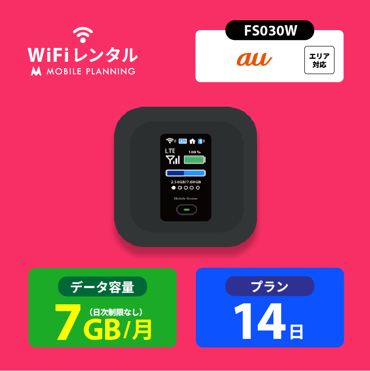 ポケットwifi レンタル 14日 wifi レンタル ポケットwi-fi レンタルwifi 2週間 wi-fiレンタル 短期 au 7GB FS030W