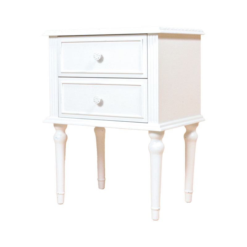 イギリスアンティーク家具を忠実に再現した、マホガニーリプロダクションシリーズ。ホワイト塗装に表面はラッカー塗装でコーティングしております。ベッドのわきに置いてご使用するのがおすすめのサイドテーブルです。引出しが2杯ついています。ベッドわきに置いときたい小物を整理できます。