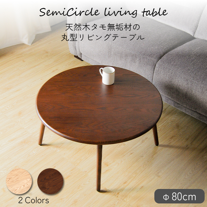 丸型リビングテーブル Φ80cm 天然木 タモ 無垢材 座卓 テーブル センターテーブル ローテーブル 丸 円形 木製 ちゃぶ台