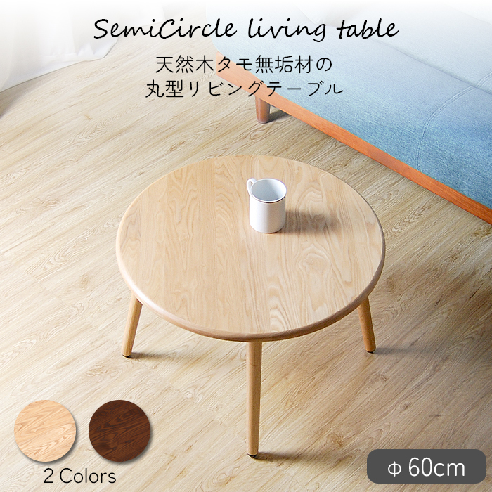 丸型リビングテーブル Φ60cm 天然木 タモ 無垢材 座卓 テーブル センターテーブル ローテーブル 丸 円形 木製 ちゃぶ台